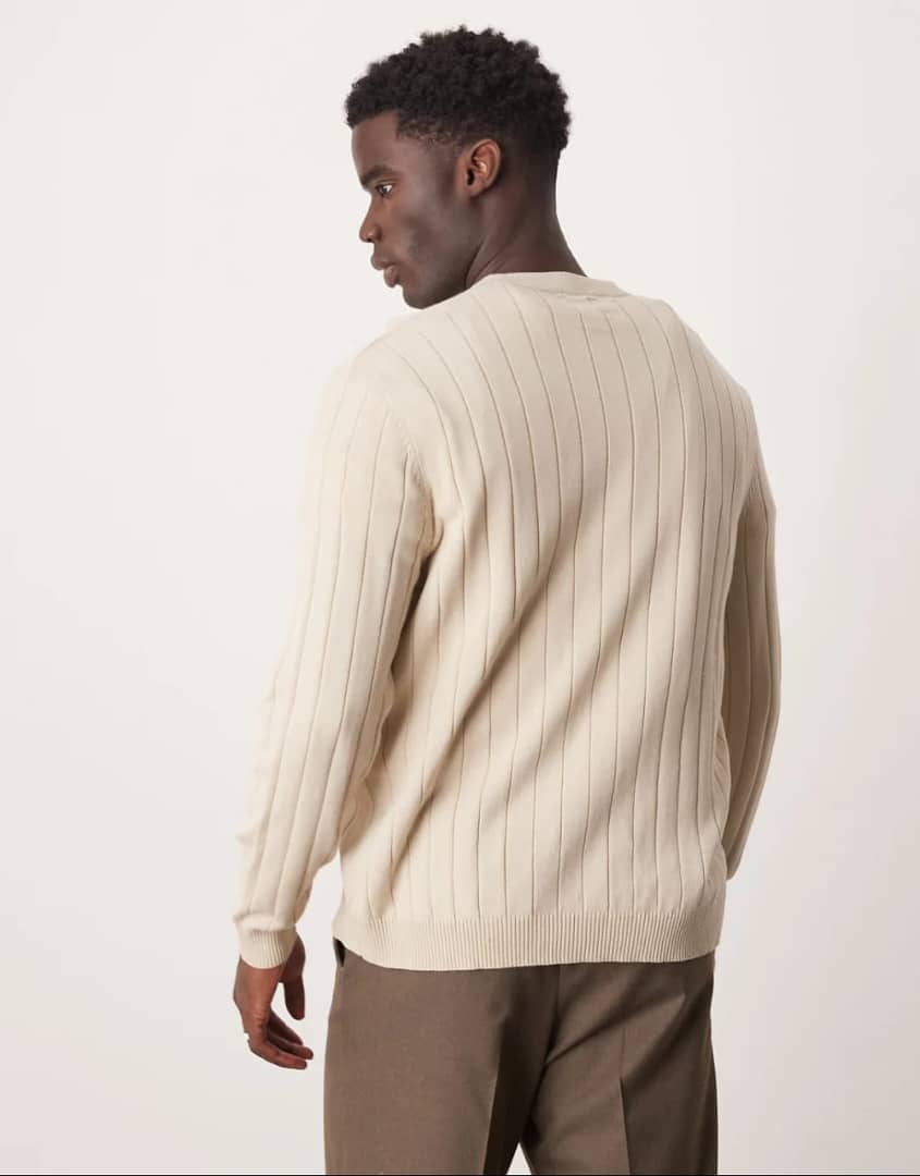 ASOS DESIGN Relaxed Knitted Wide Rib Grandad Neck Jumper (Oatmeal)