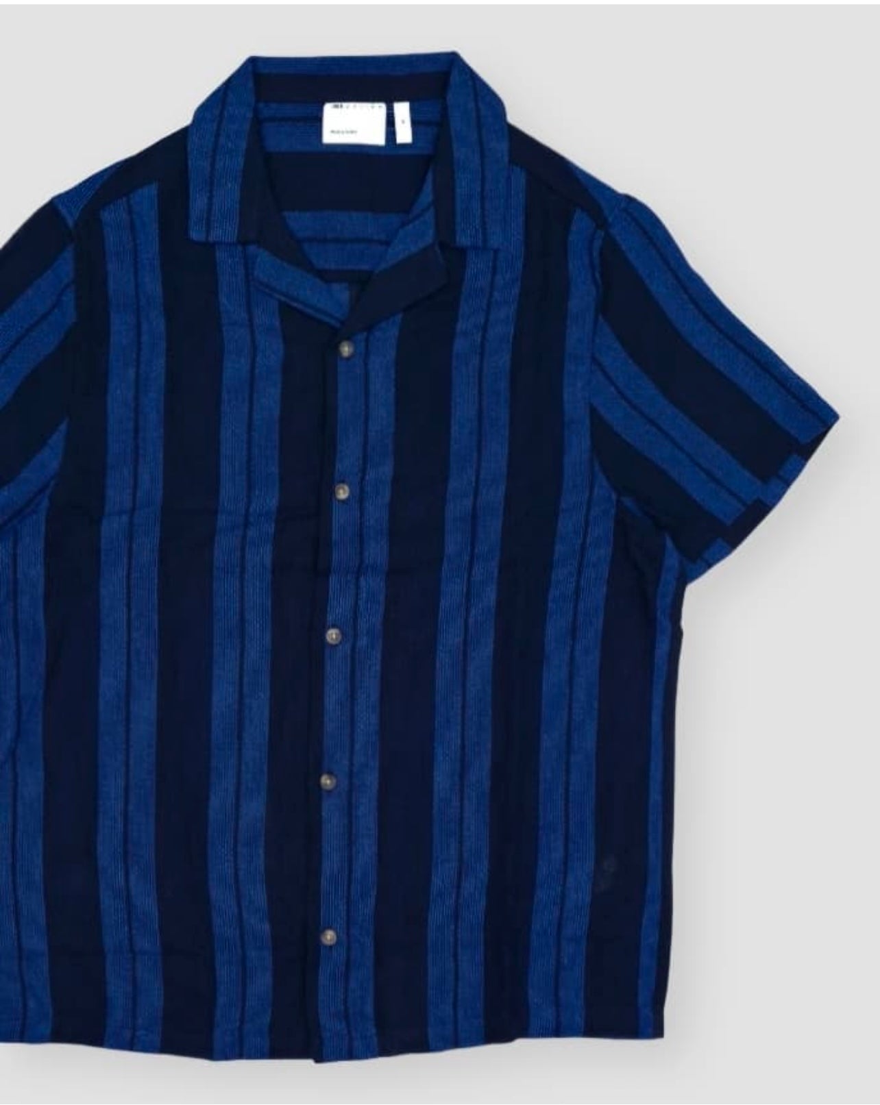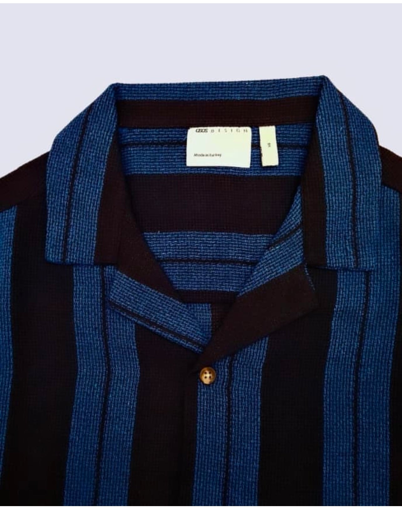 Asos Knit Cotton Shirt in Basket Stripe Navy