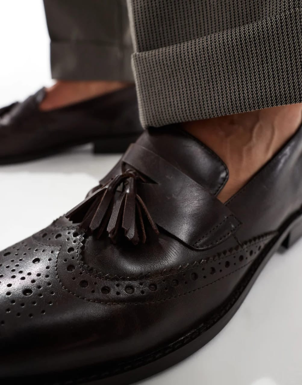 Asos Leather Brogues Shoes With Tassels in Brown