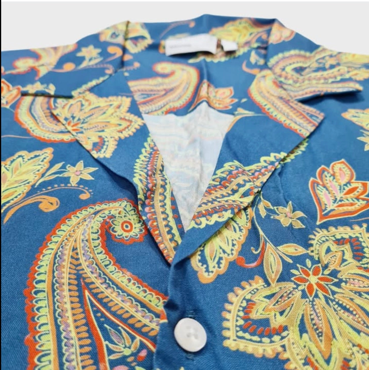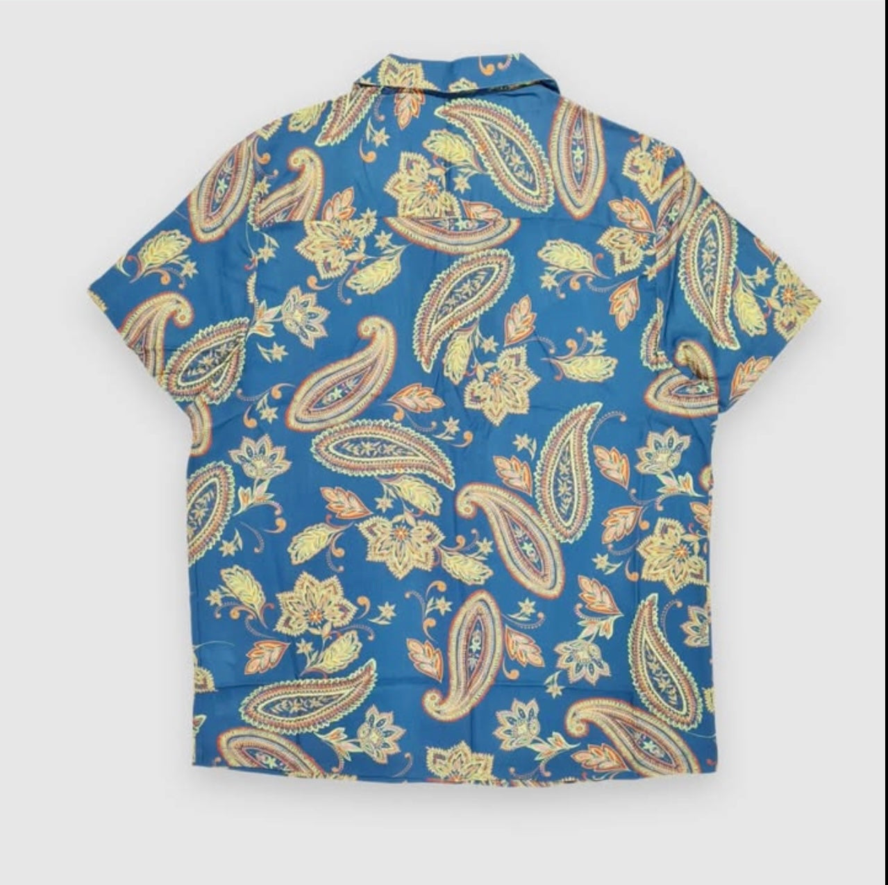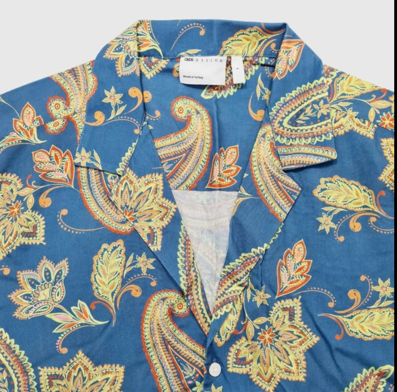 Asos Regular Fit Blue Paisley Shirt With Revere Collar