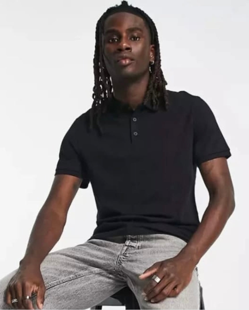 Asos Regular Fit Cotton Polo Shirt in Black