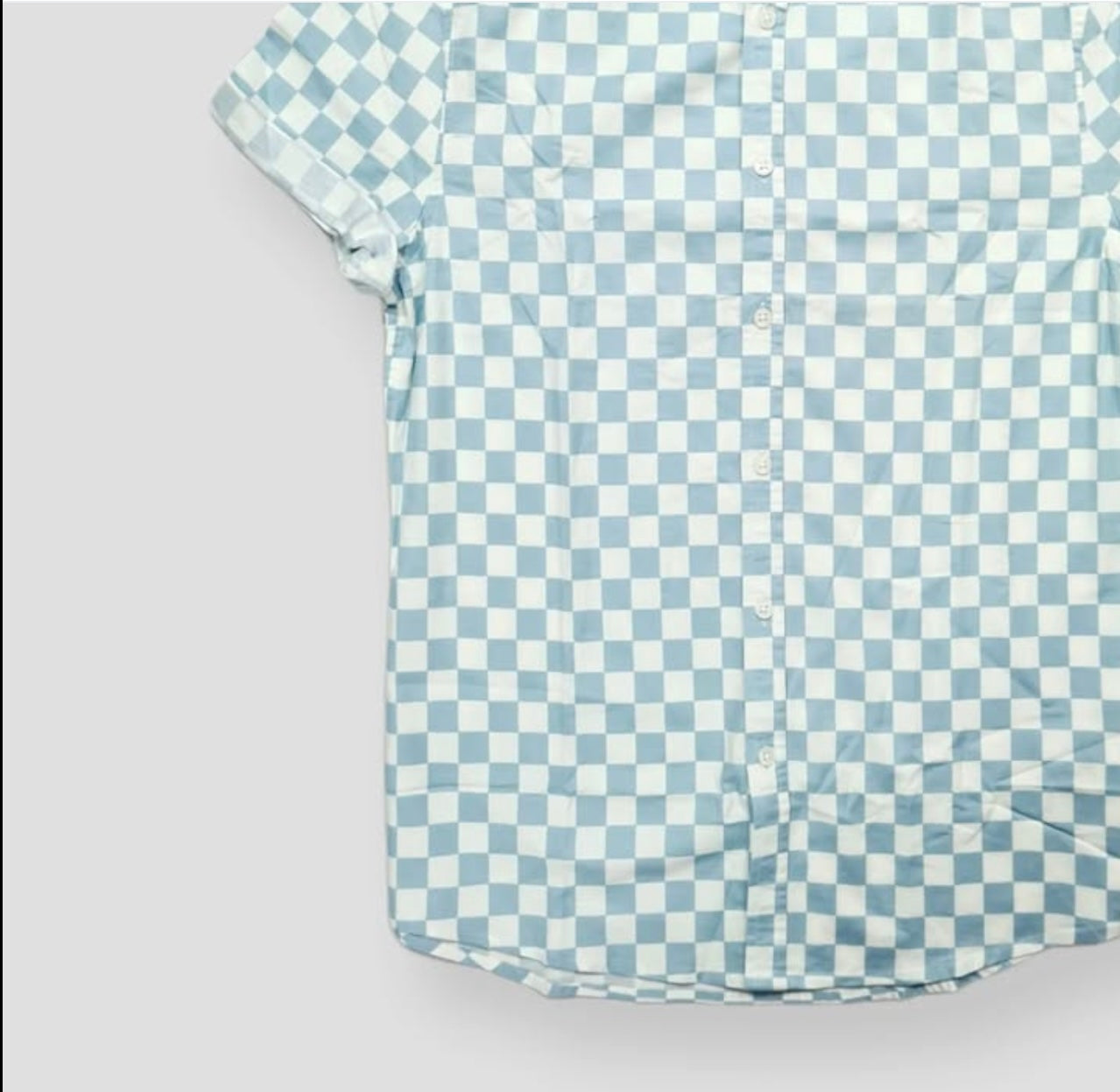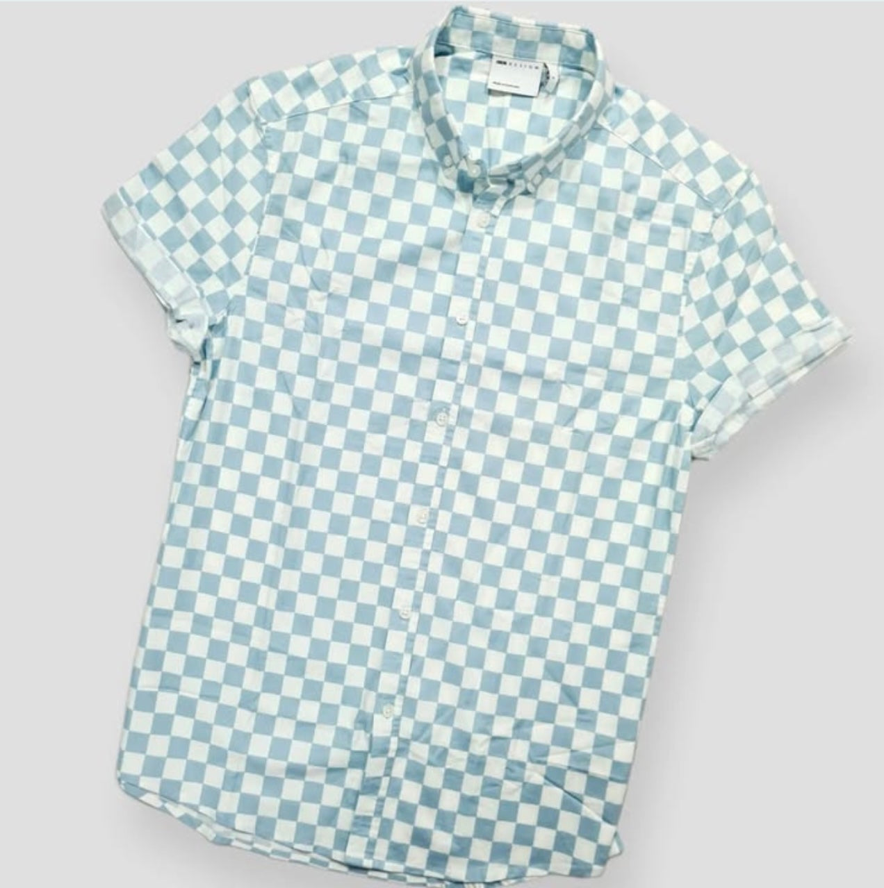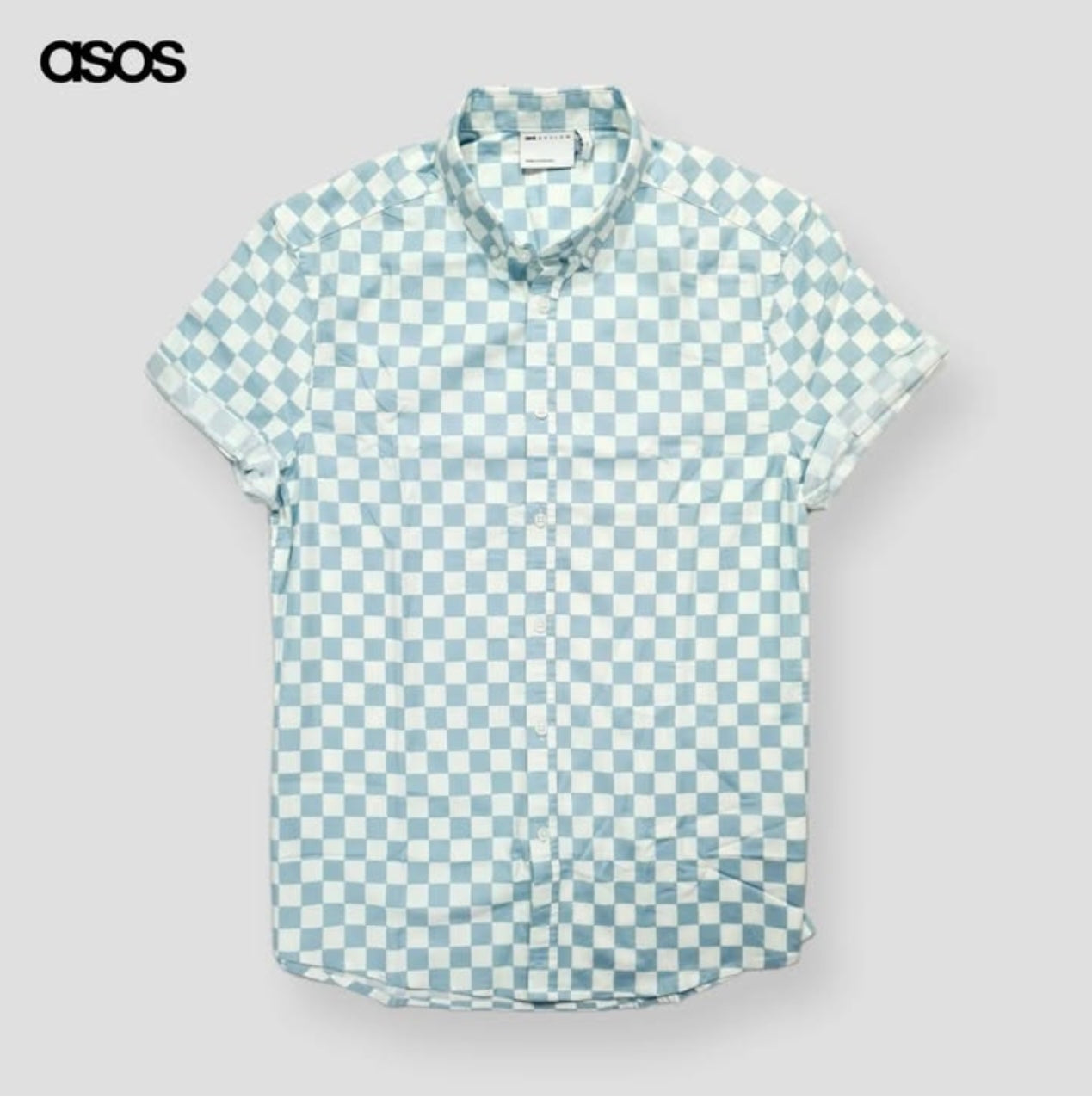 Asos Slim Fit Blue Check Cotton Short Sleeve Shirt