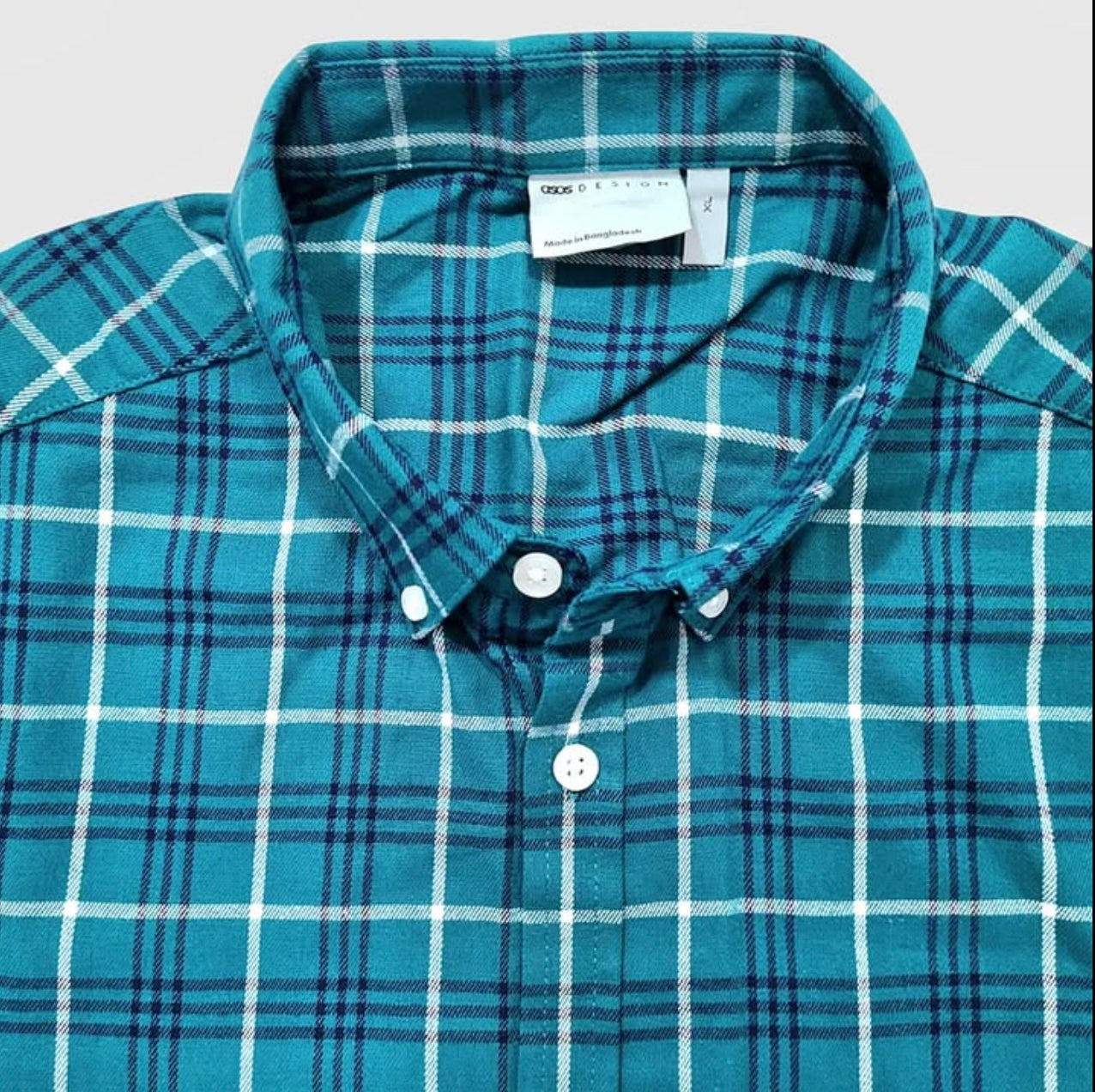 Asos Slim Fit Blue Check Oxford Cotton Short Sleeve