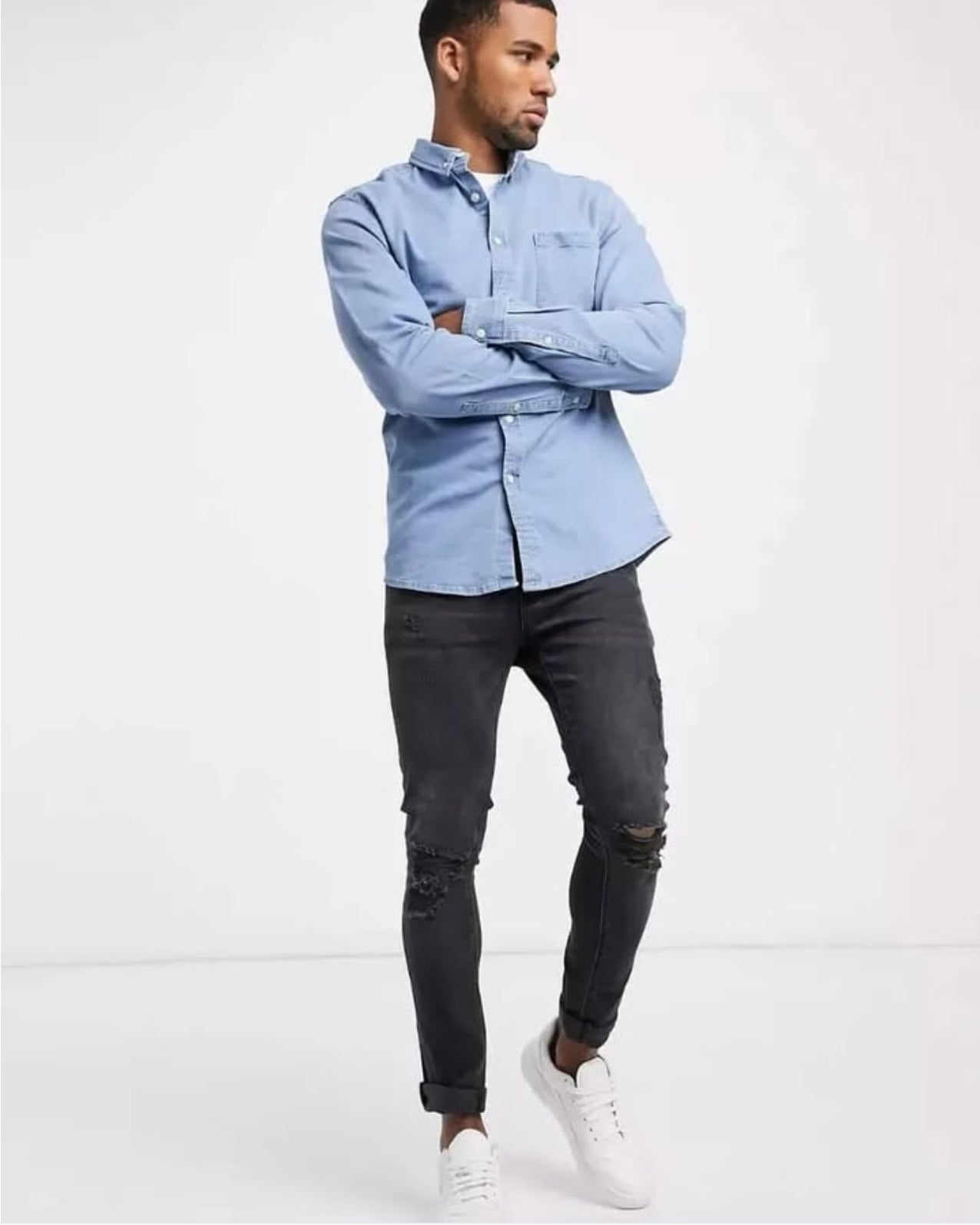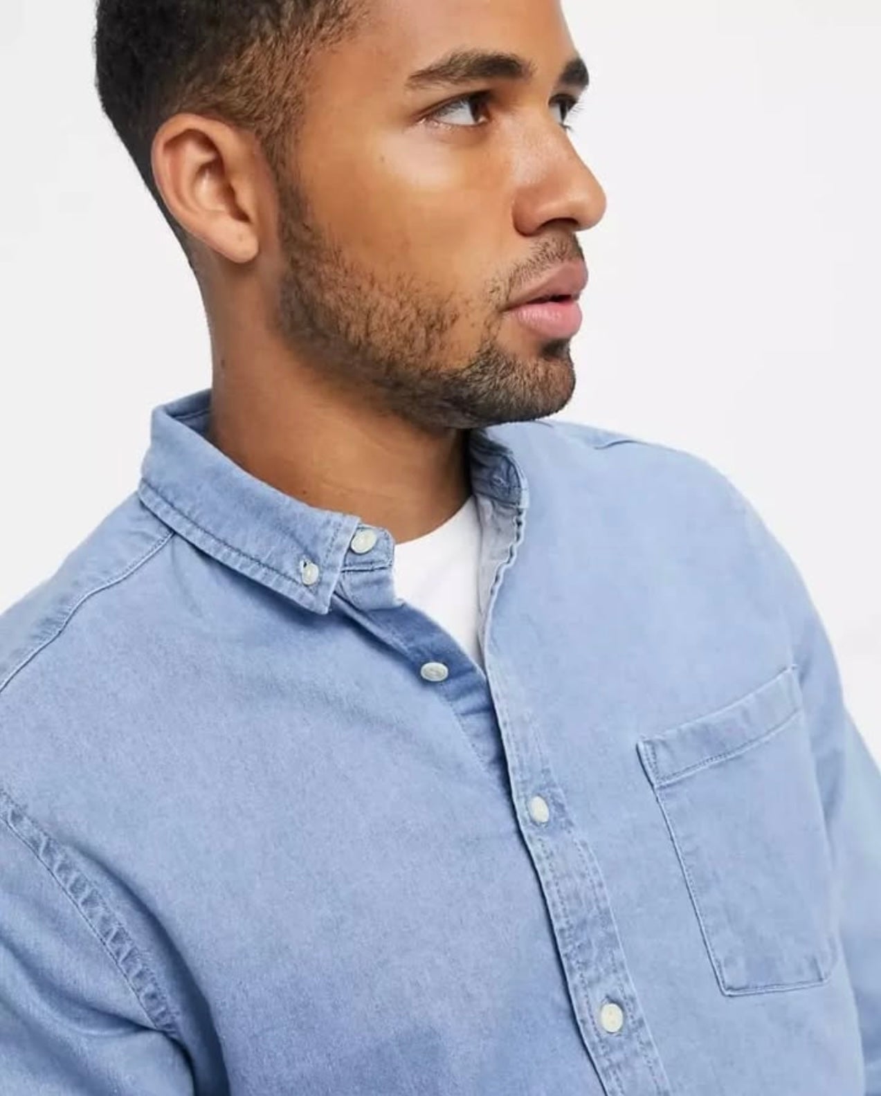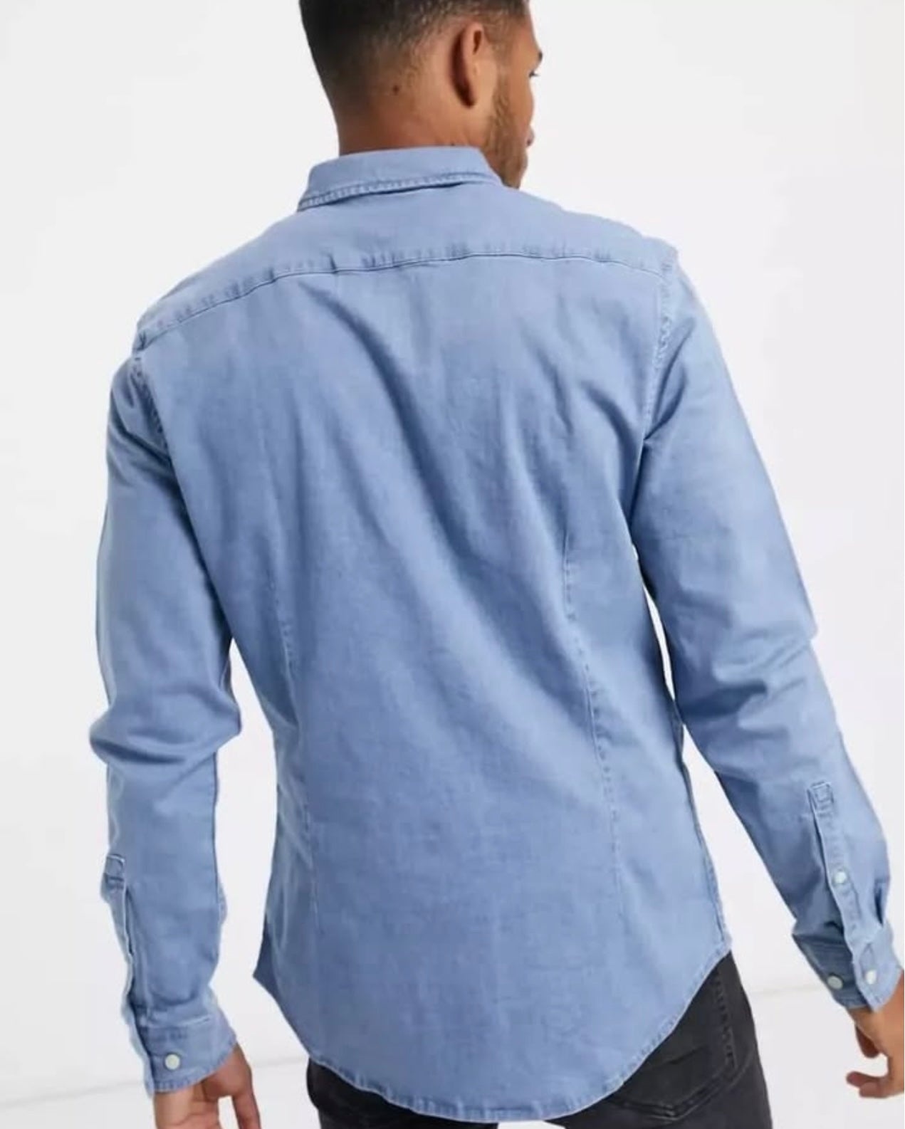 Asos Slim Fit Blue Wash Denim Button Cotton Cuff Shirt