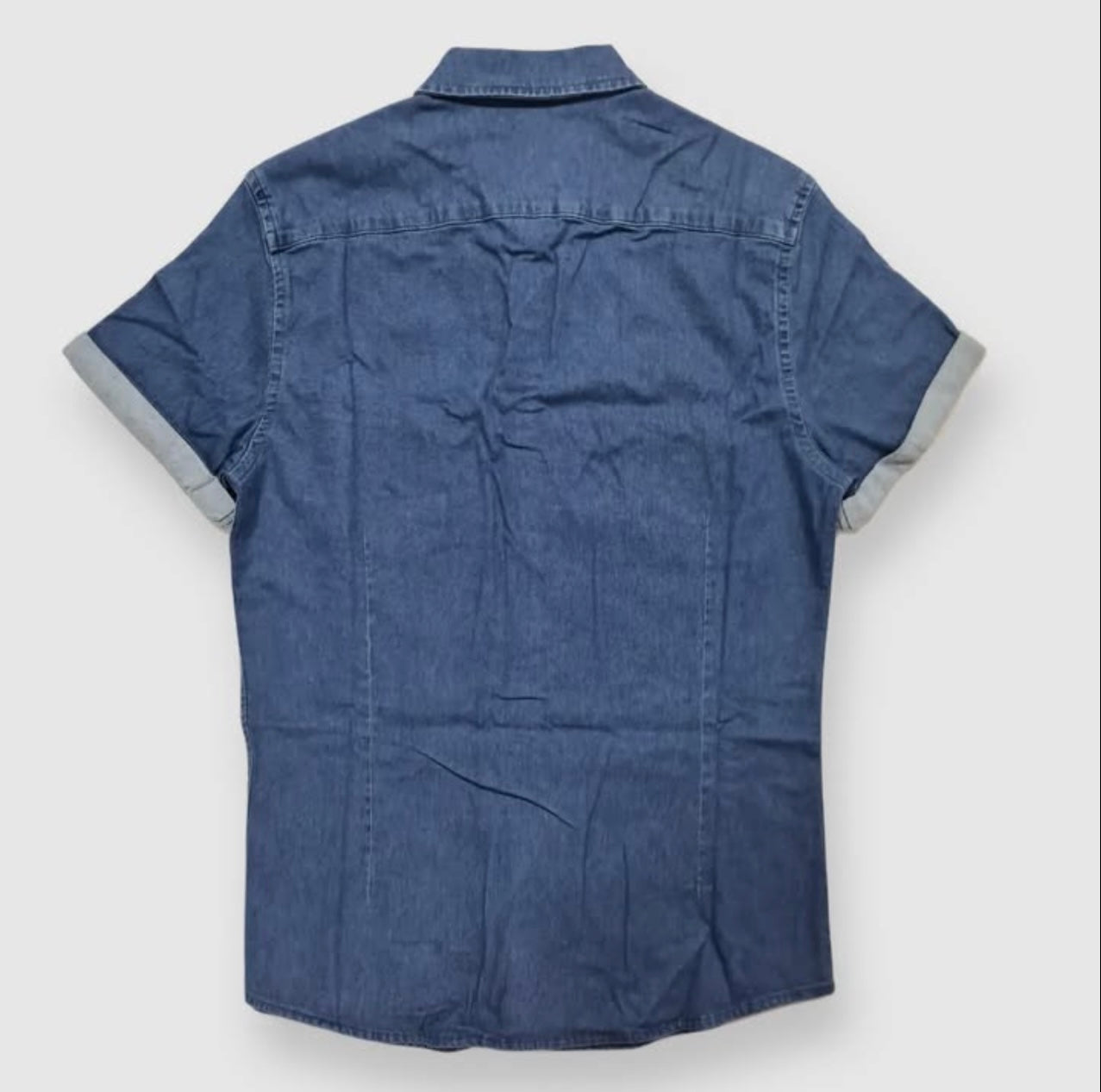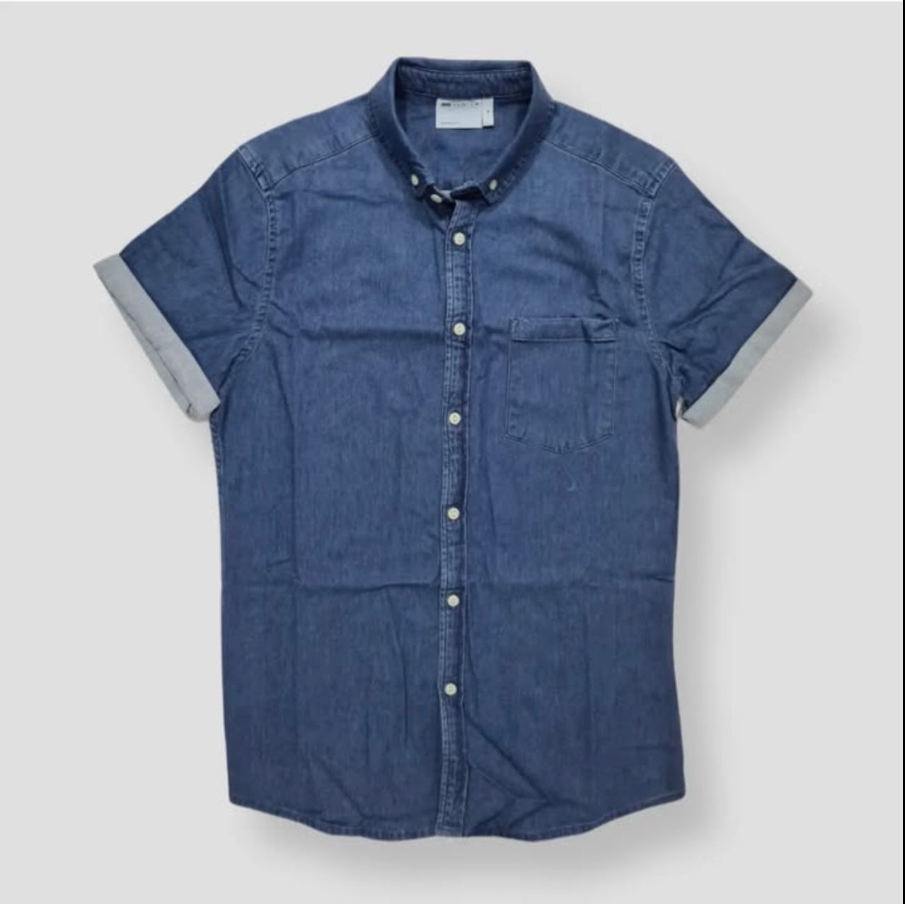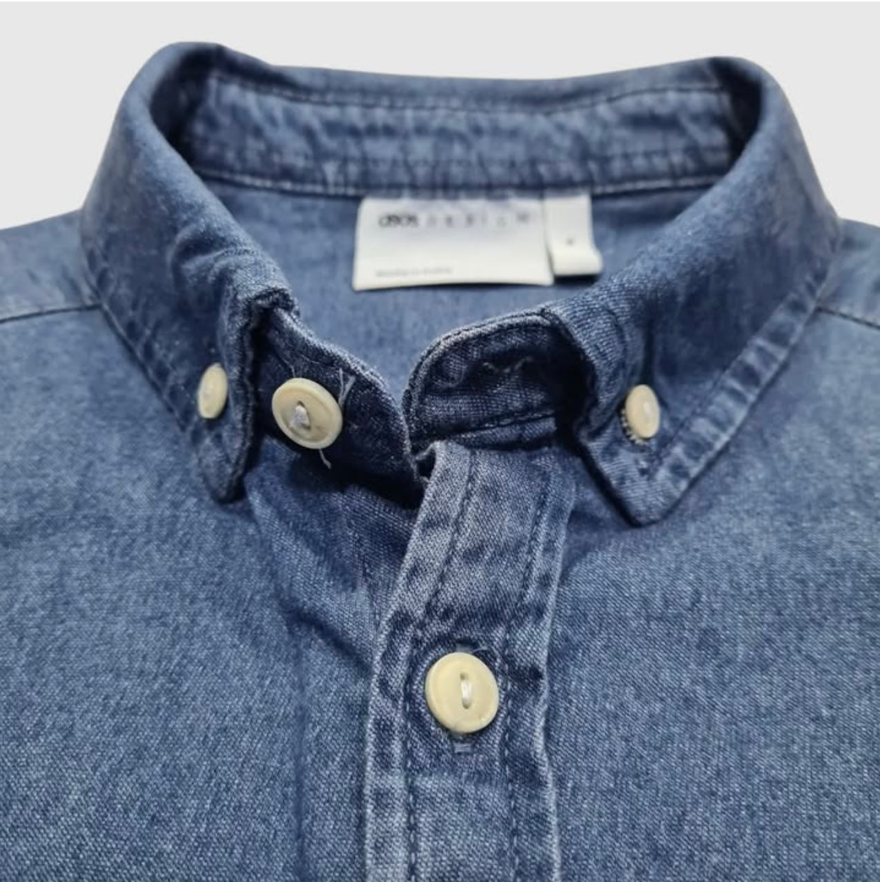 Asos Slim Fit Blue Wash Denim Short Sleeve Shirt