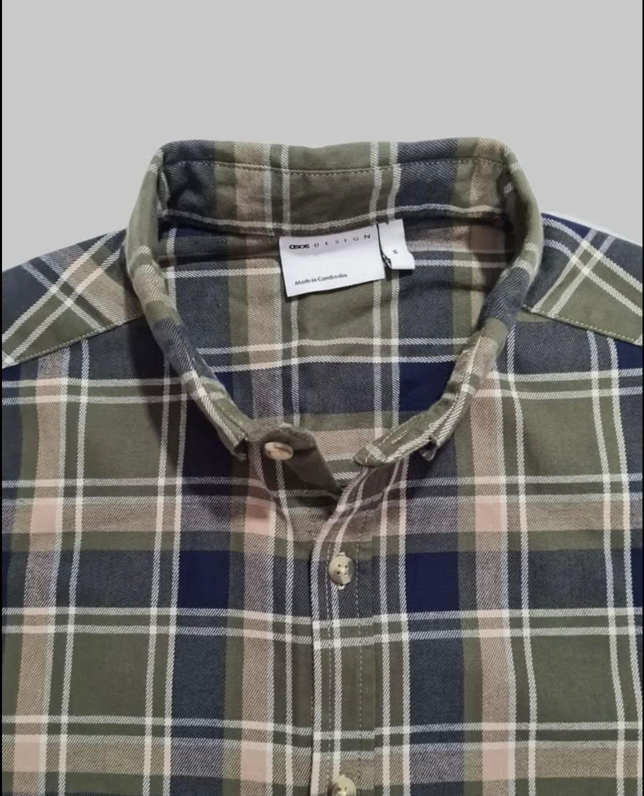 Asos Slim Fit Green Plaid Cotton Button Cuff Shirt