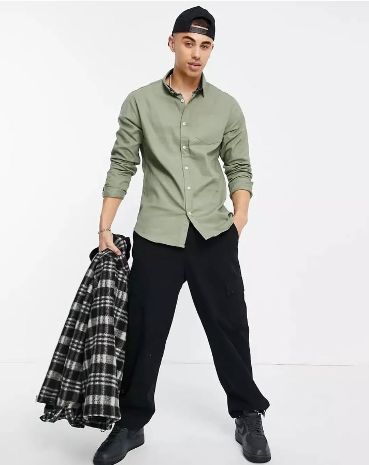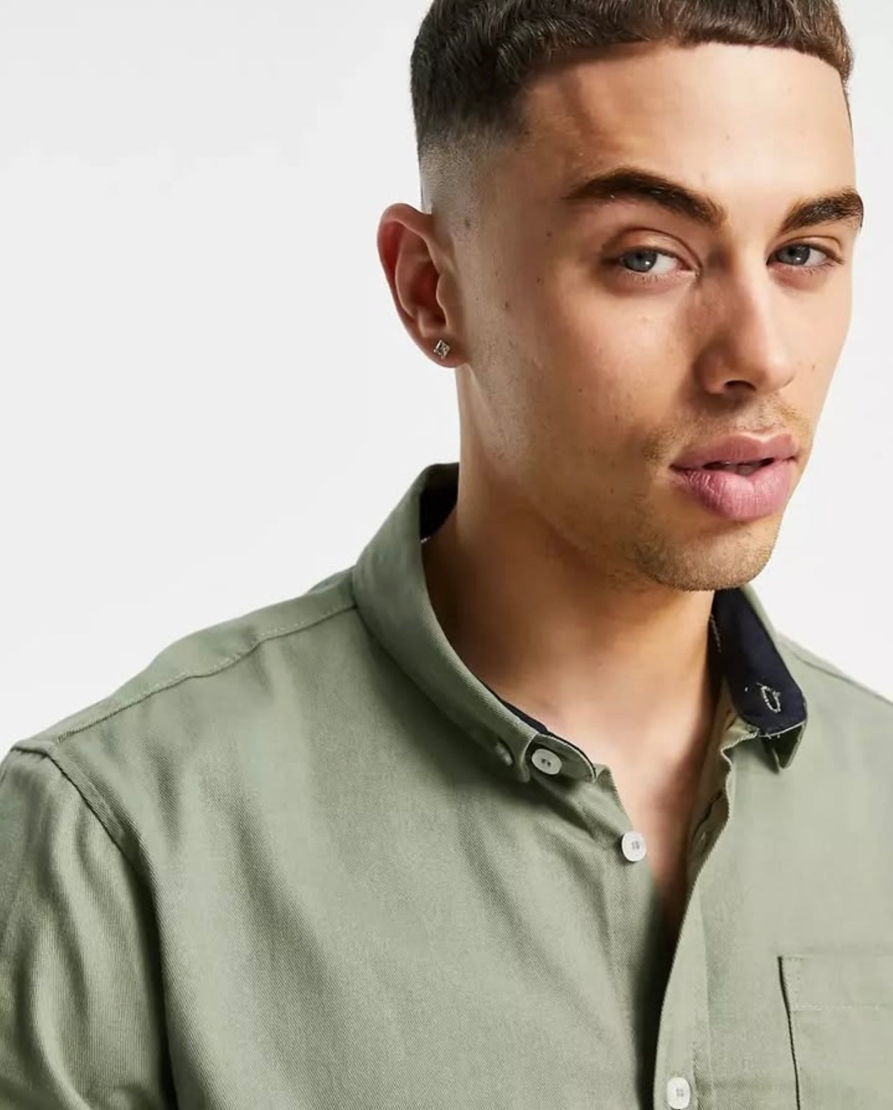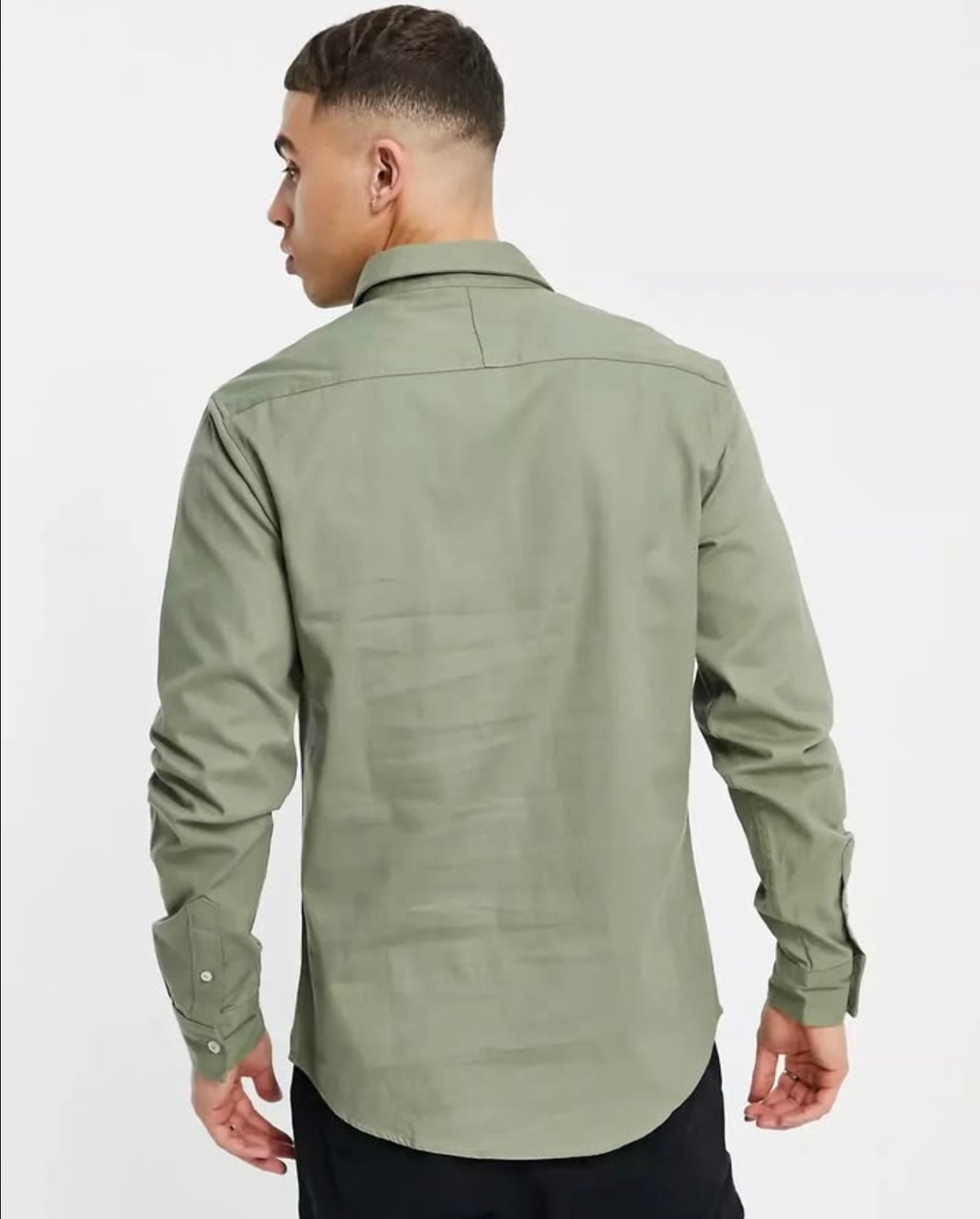 Brave Soul Regular Fit Army Green Plain Cotton Twill Button Cuff Shirt