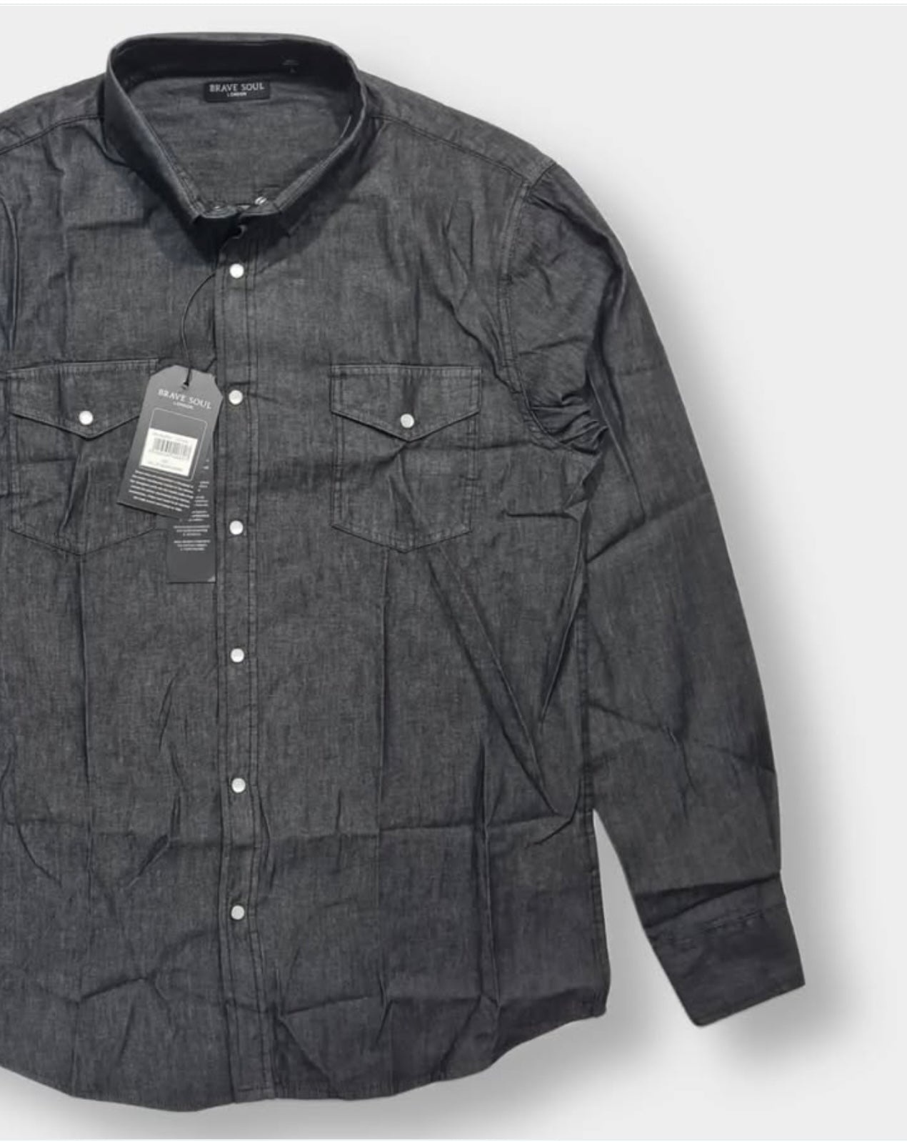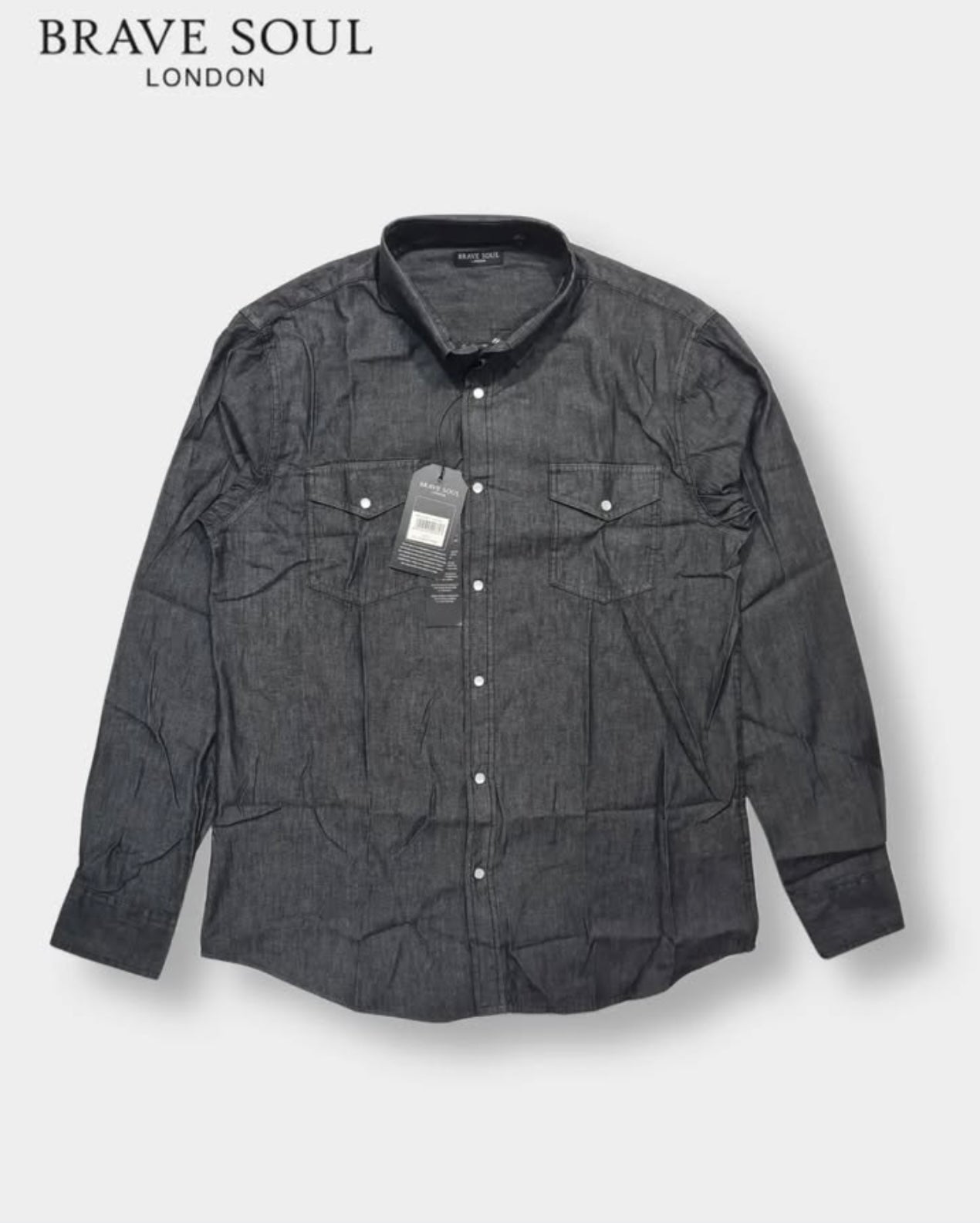Brave Soul Regular Fit Black Wash Soft Denim Button Cuff Shirt