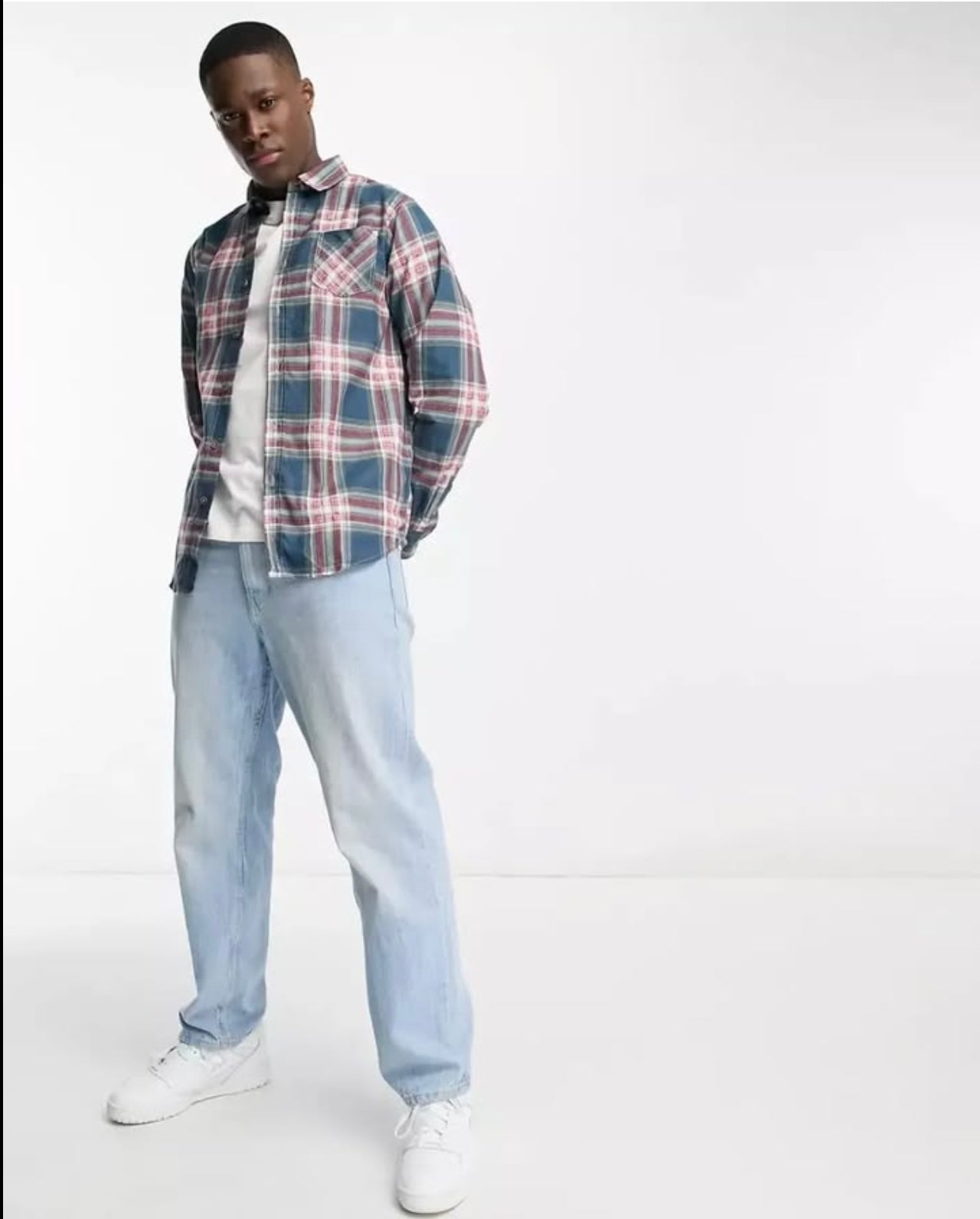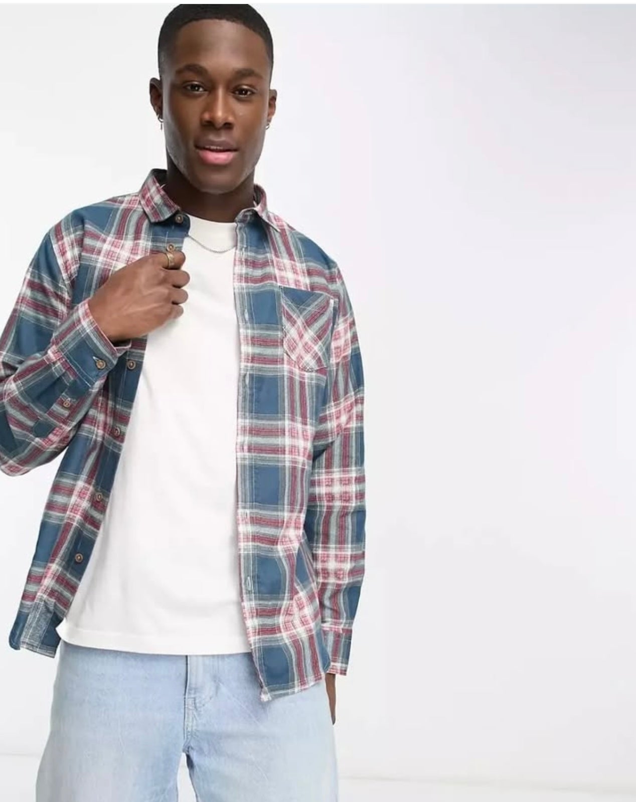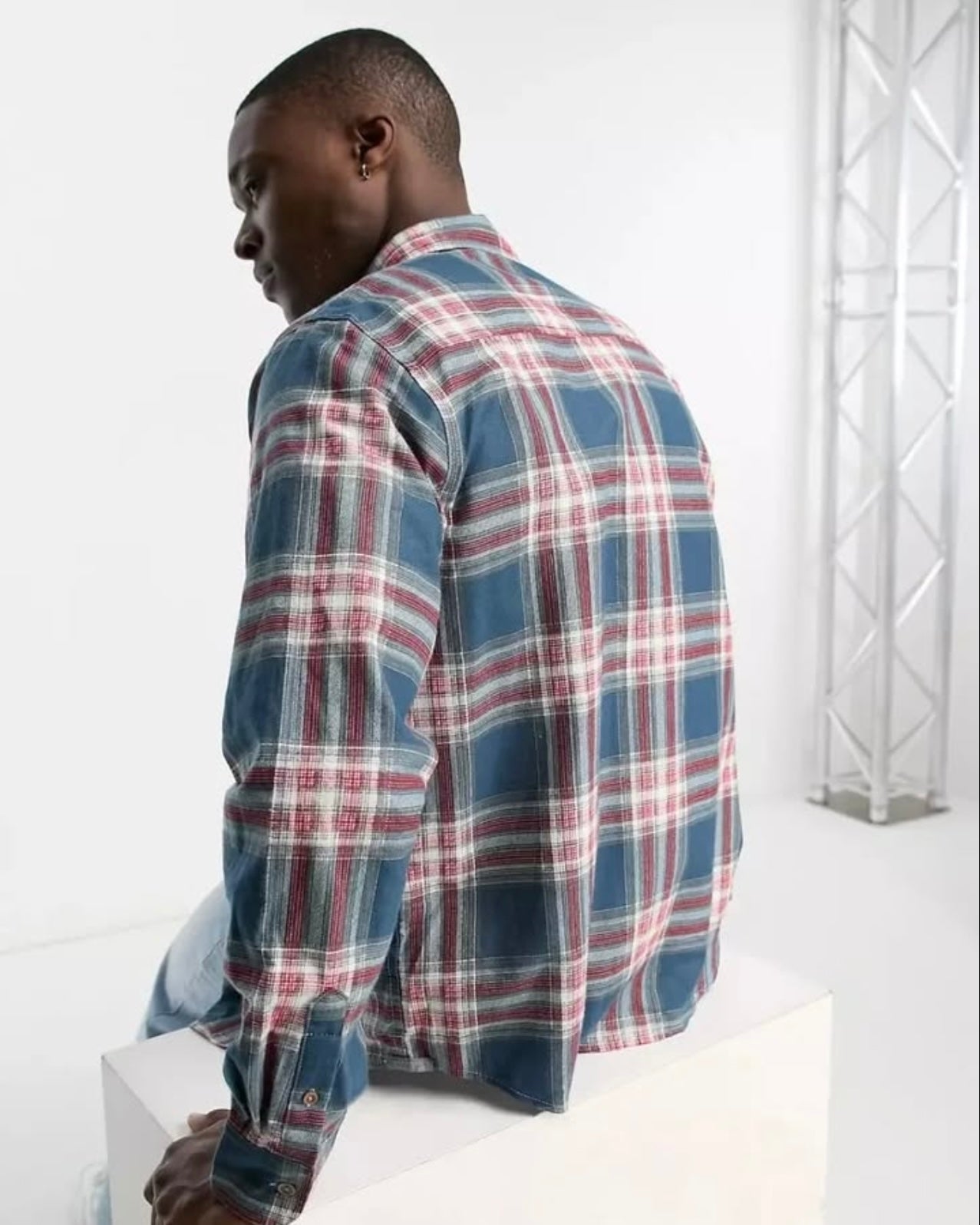 Brave Soul Regular Fit Blue Check Button Cuff Shirt