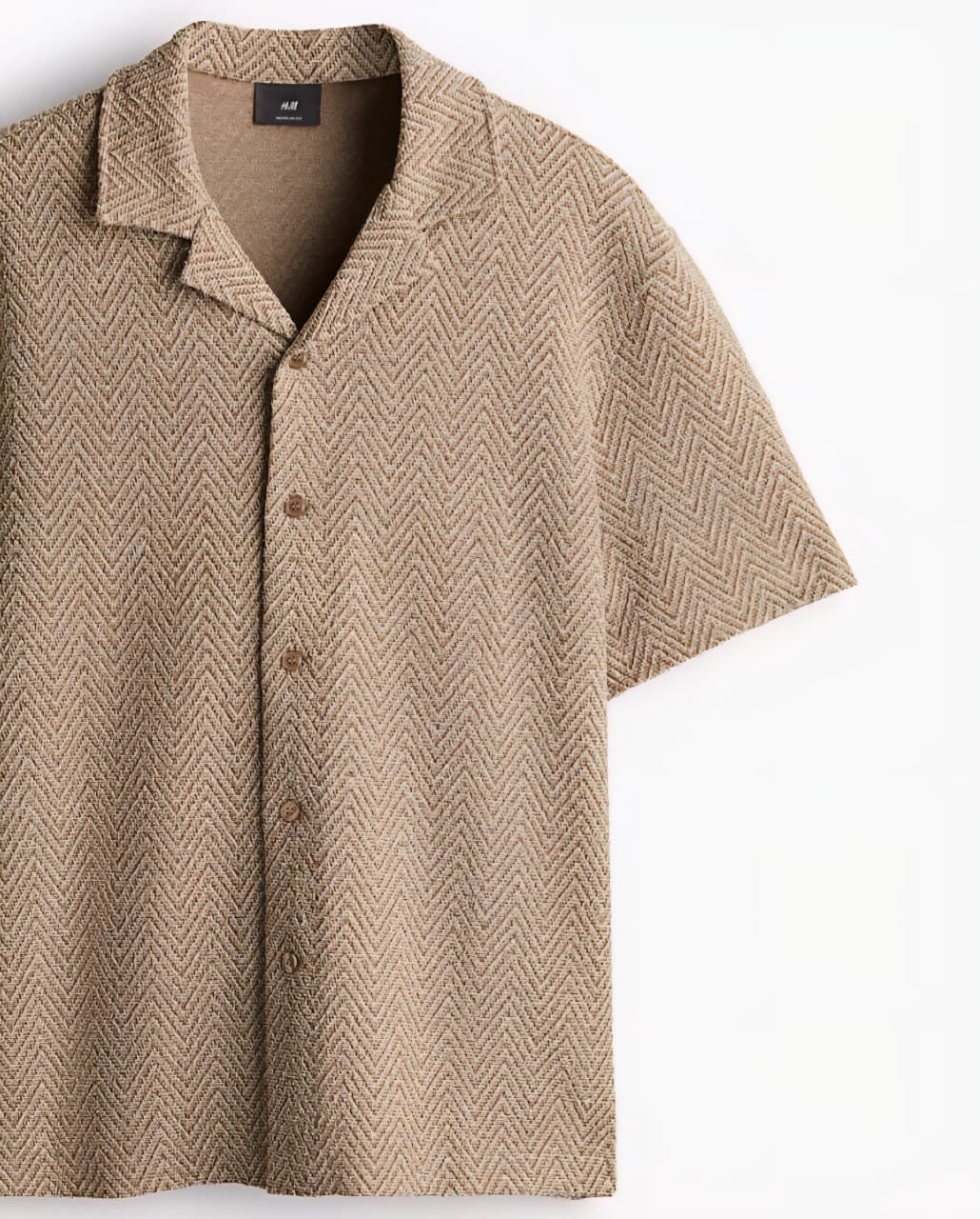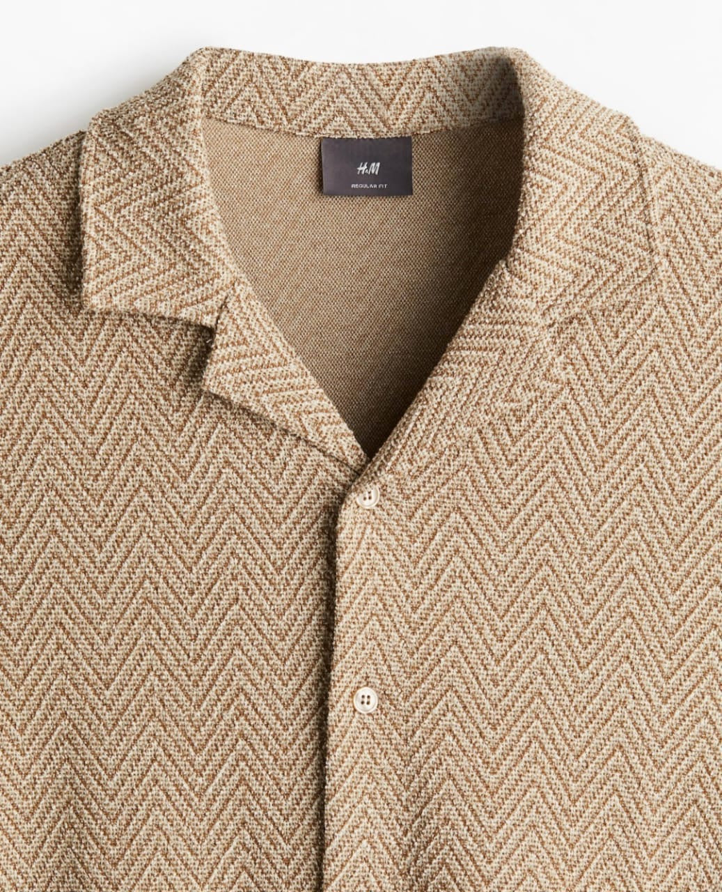 H & M Regular Fit Herringbone Weave Shirt in Beige
