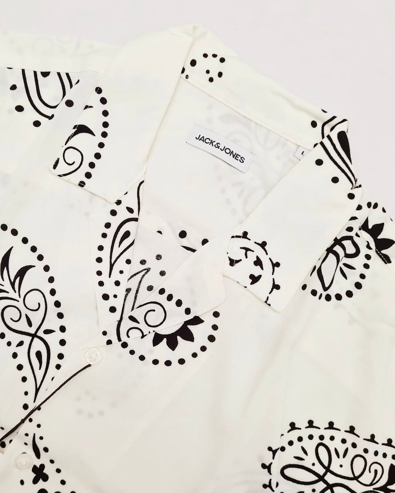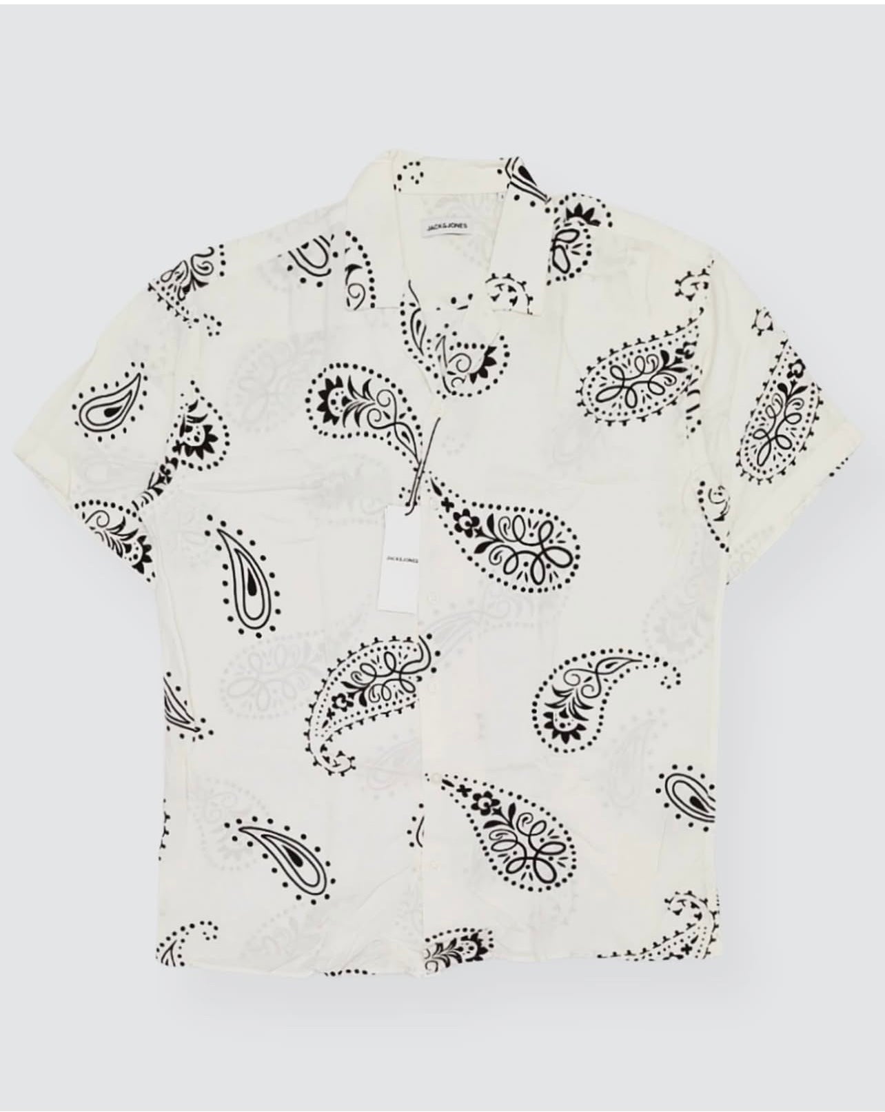 J & J Regular Fit Pattern Shirt in Off- White/ Ecru