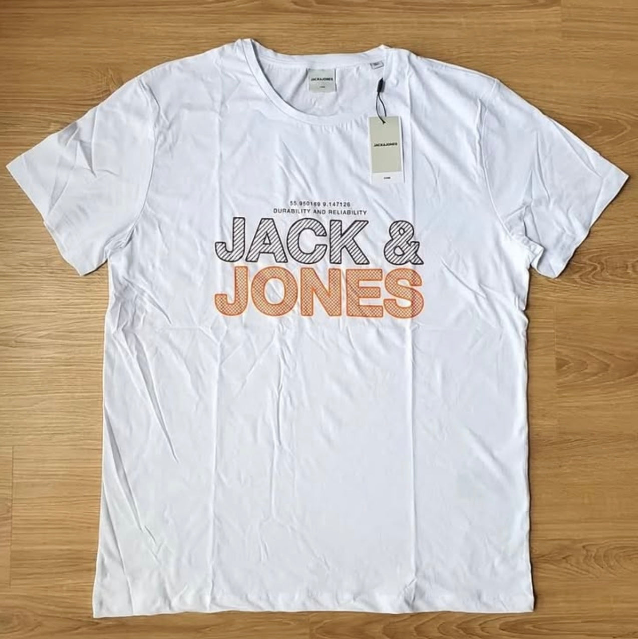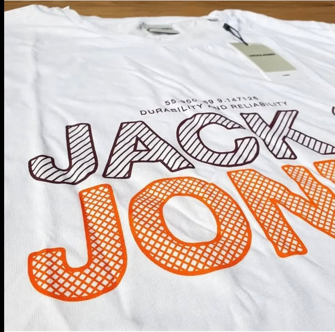 Jack & Jones Regular Fit White Digital Print Cotton T Shirt
