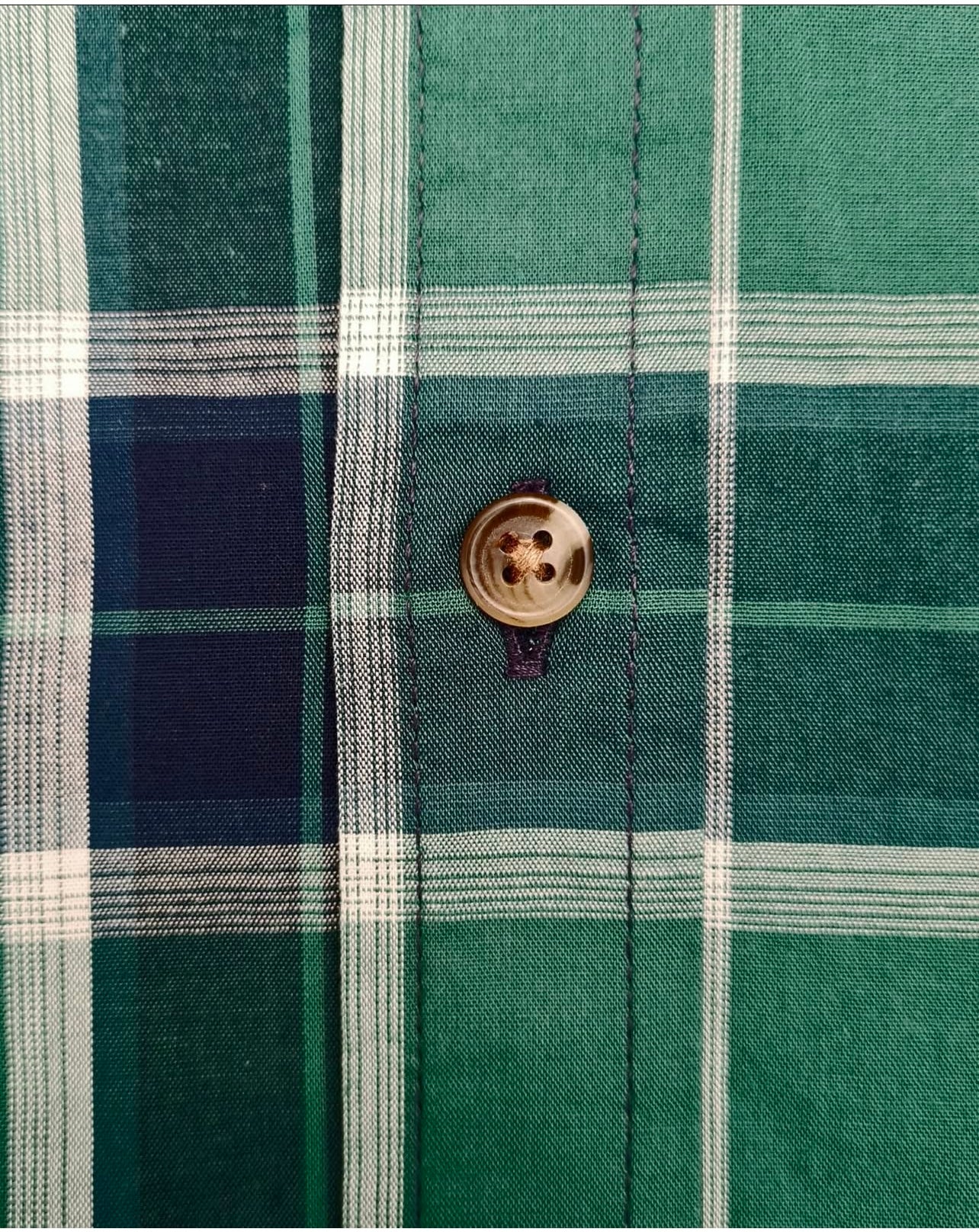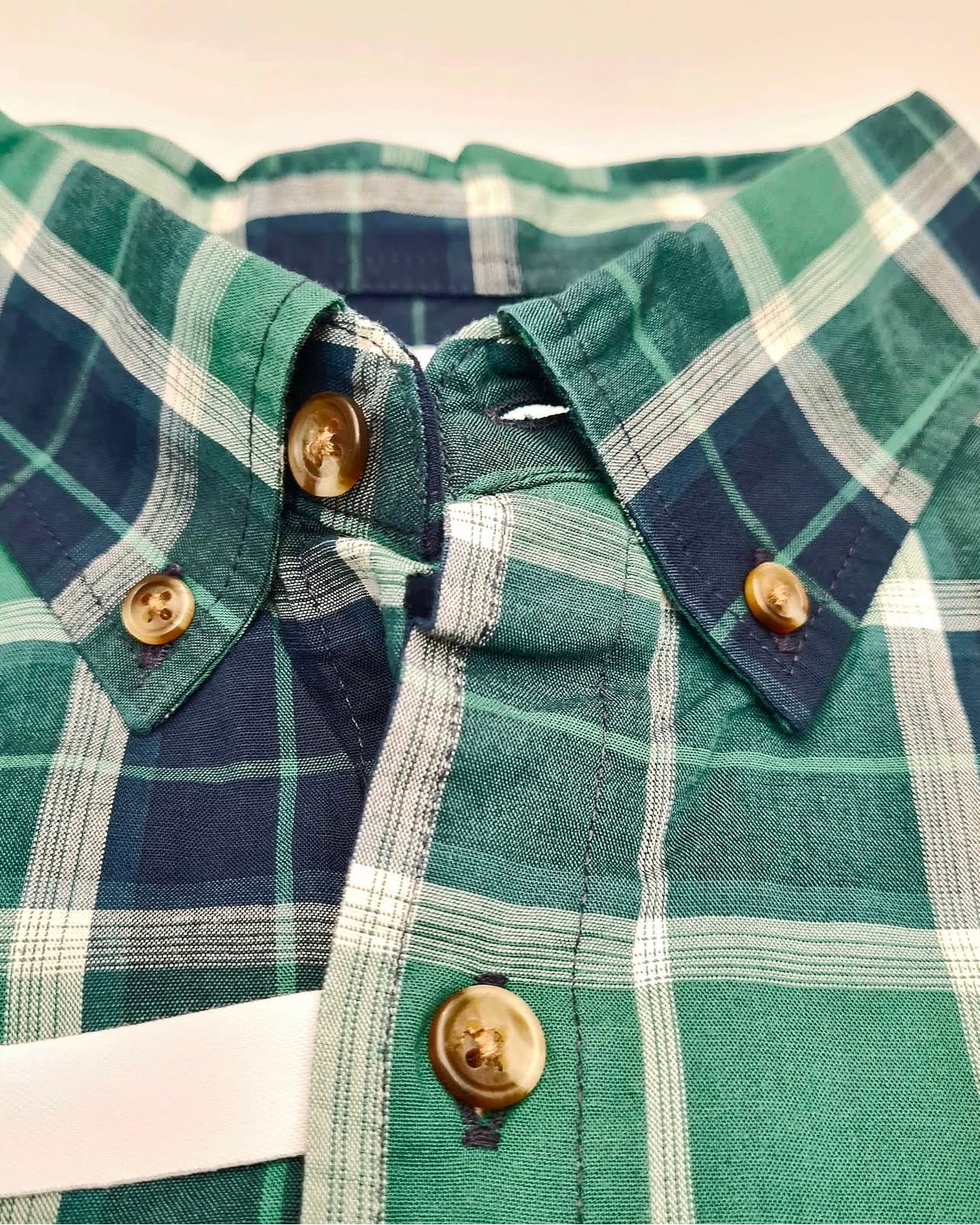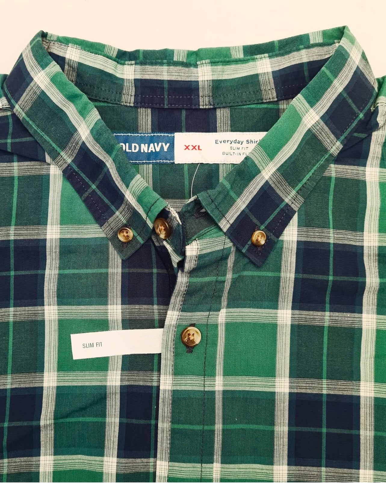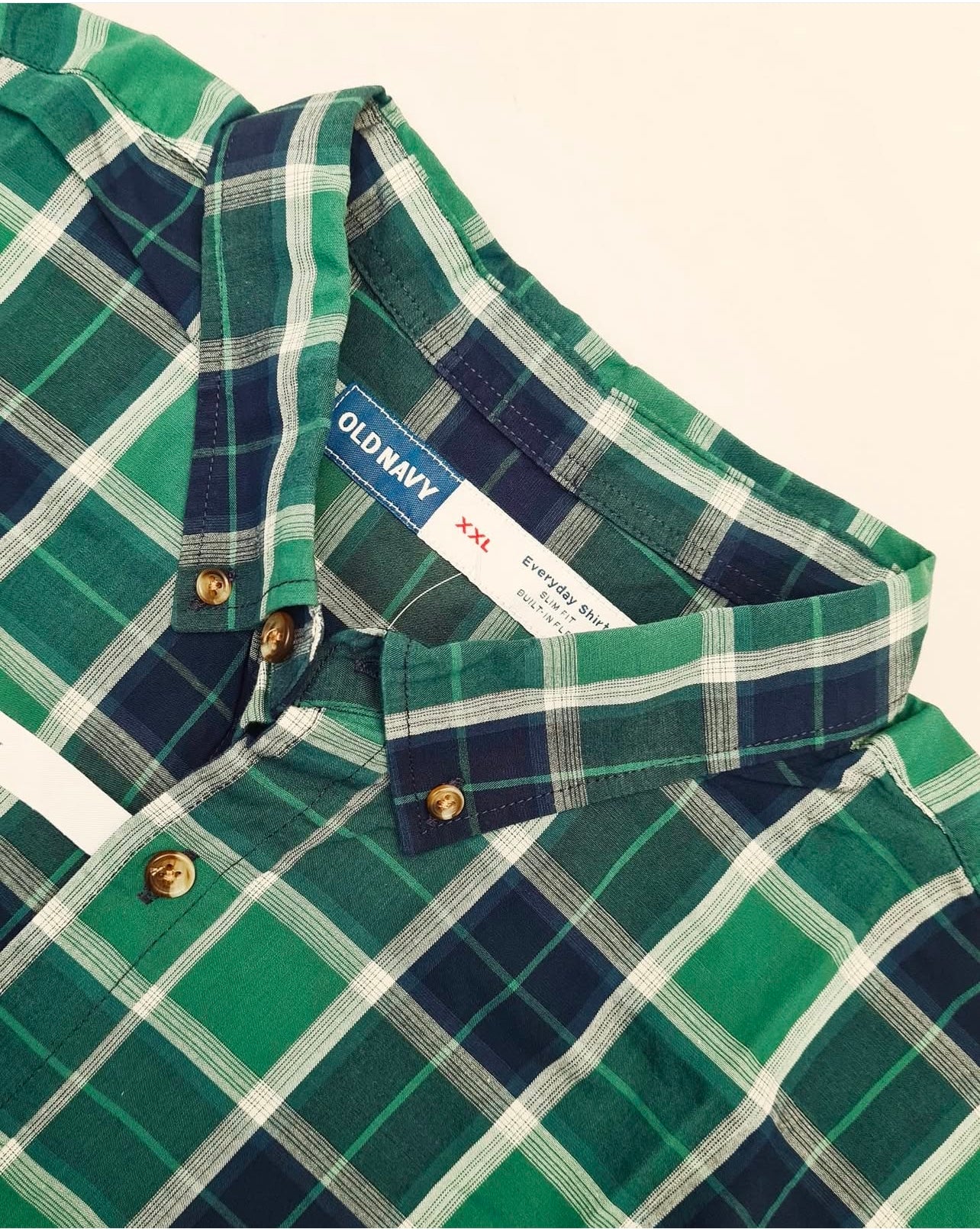 Old Navy Green Plaid Cotton Button Cuff Shirt
