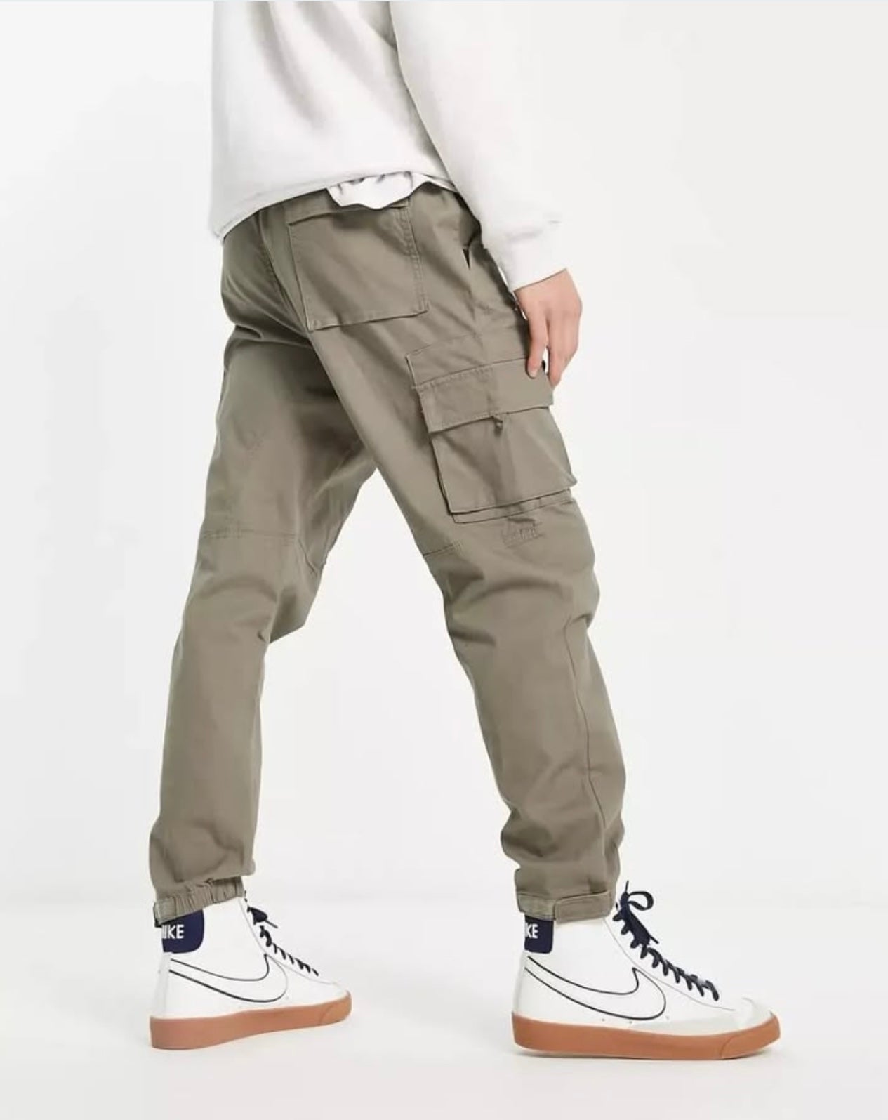 Pull & Bear Contrast Pockets Ripstop Cargo in Khaki