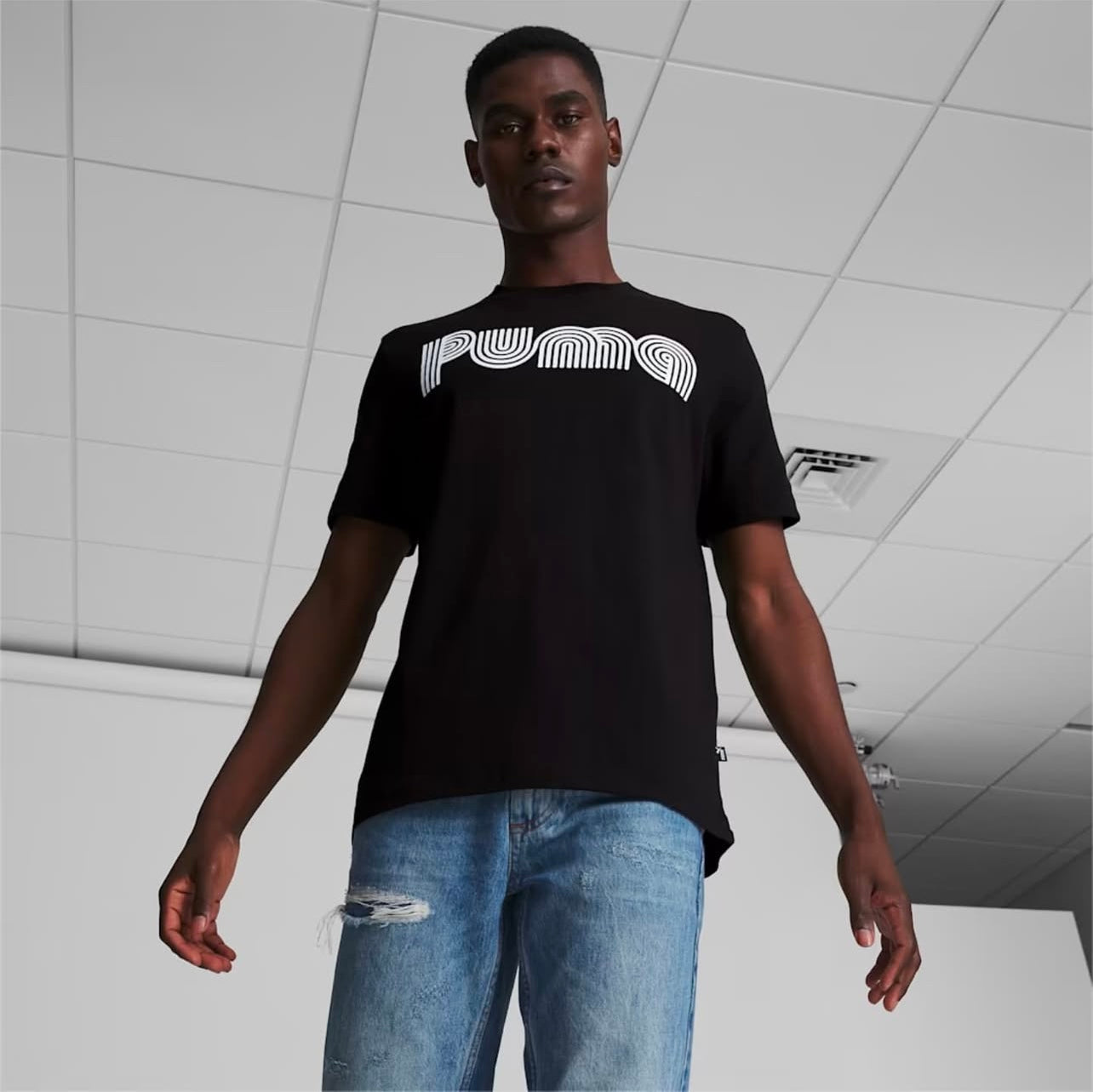 Puma Regular Fit Cotton T shirt in Black
