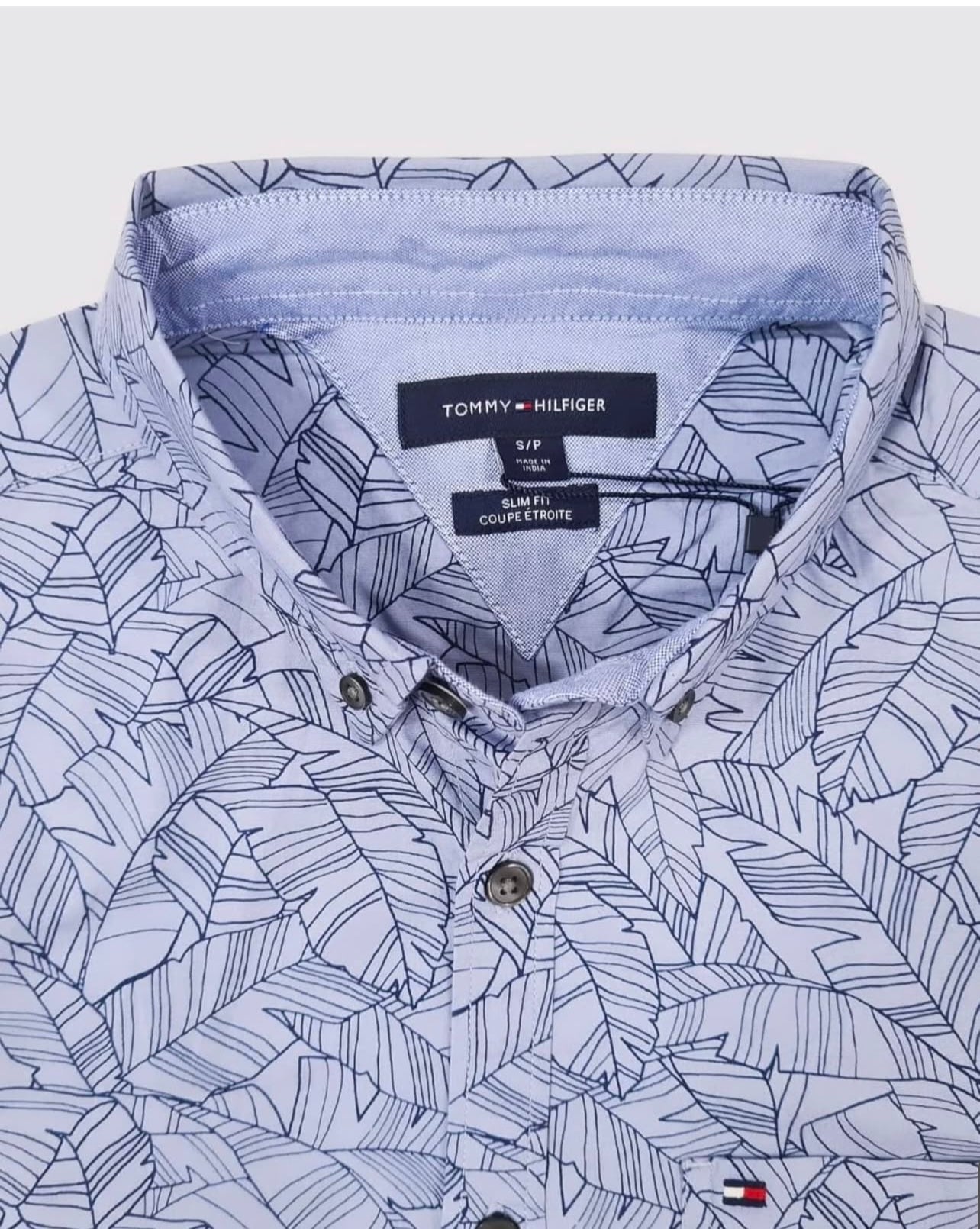 Tommy Hilfiger Blue Pattern Cotton Short Sleeve Shirt