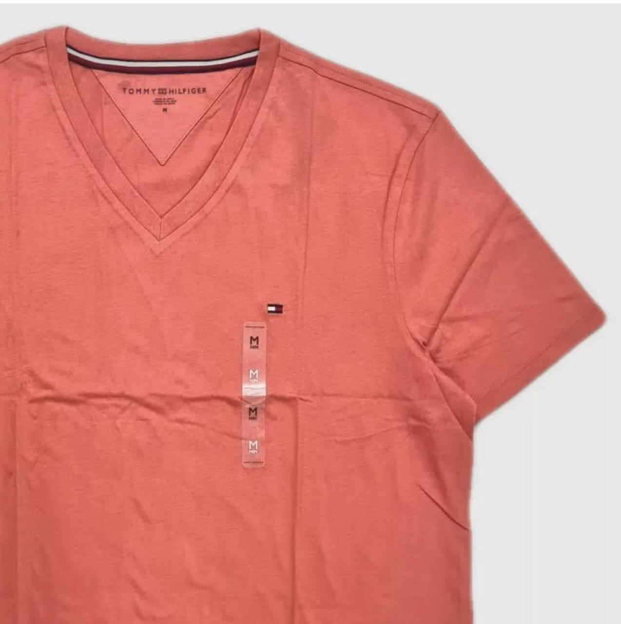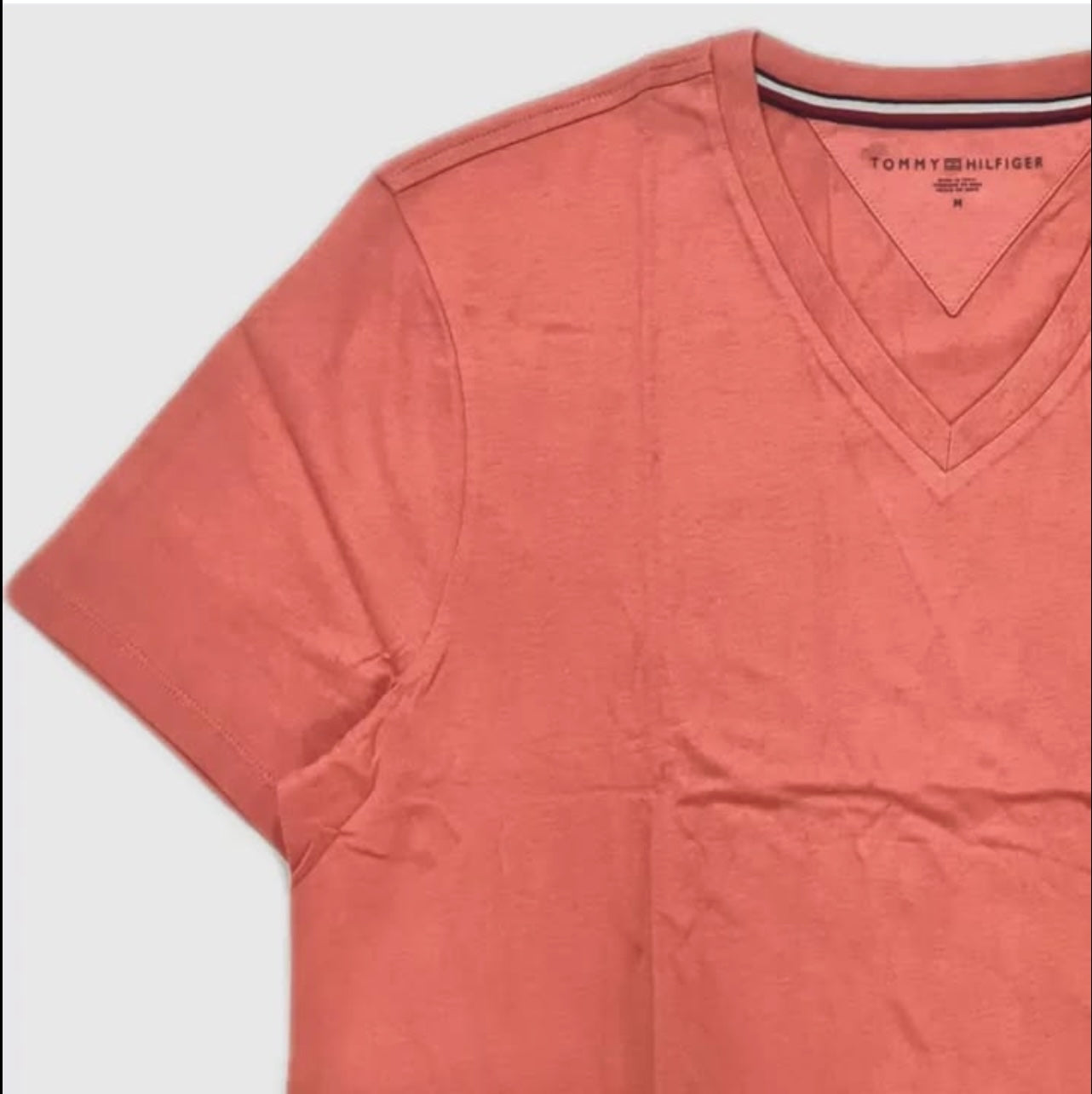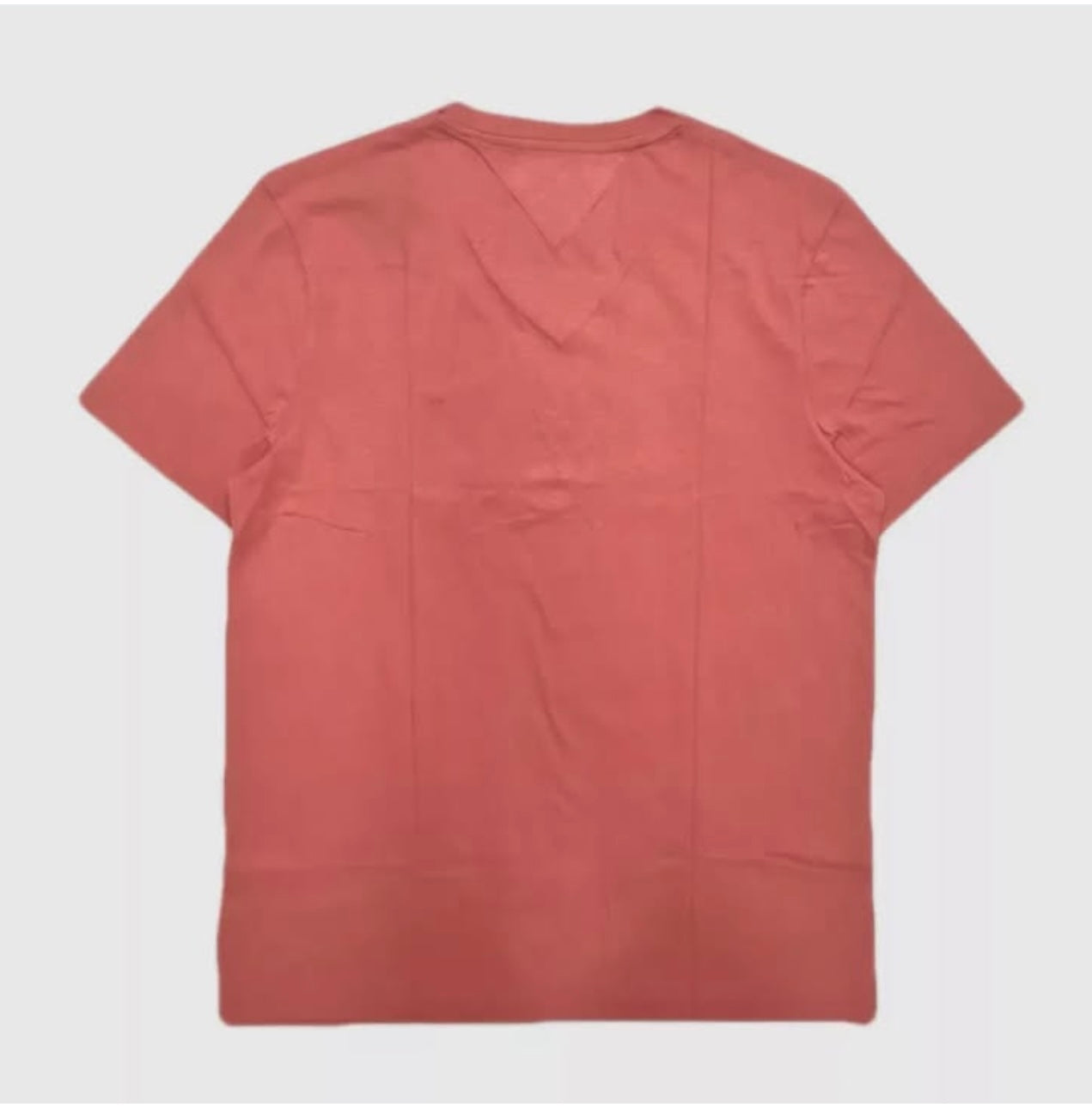 Tommy Hilfiger Regular Fit Cotton V Neck Short Sleeve T Shirt in Peach