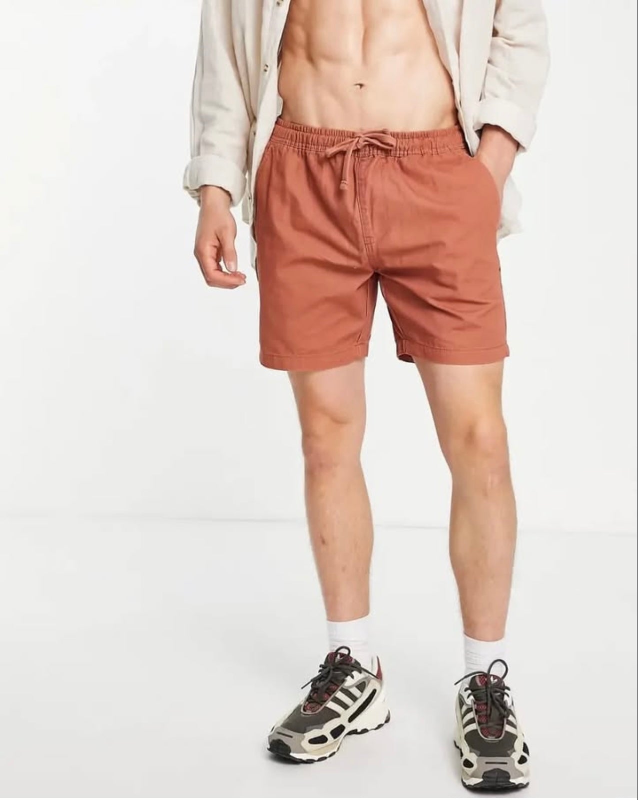 Threadbare Elasticated Waist Chinos Chinos Shorts in Red Clay