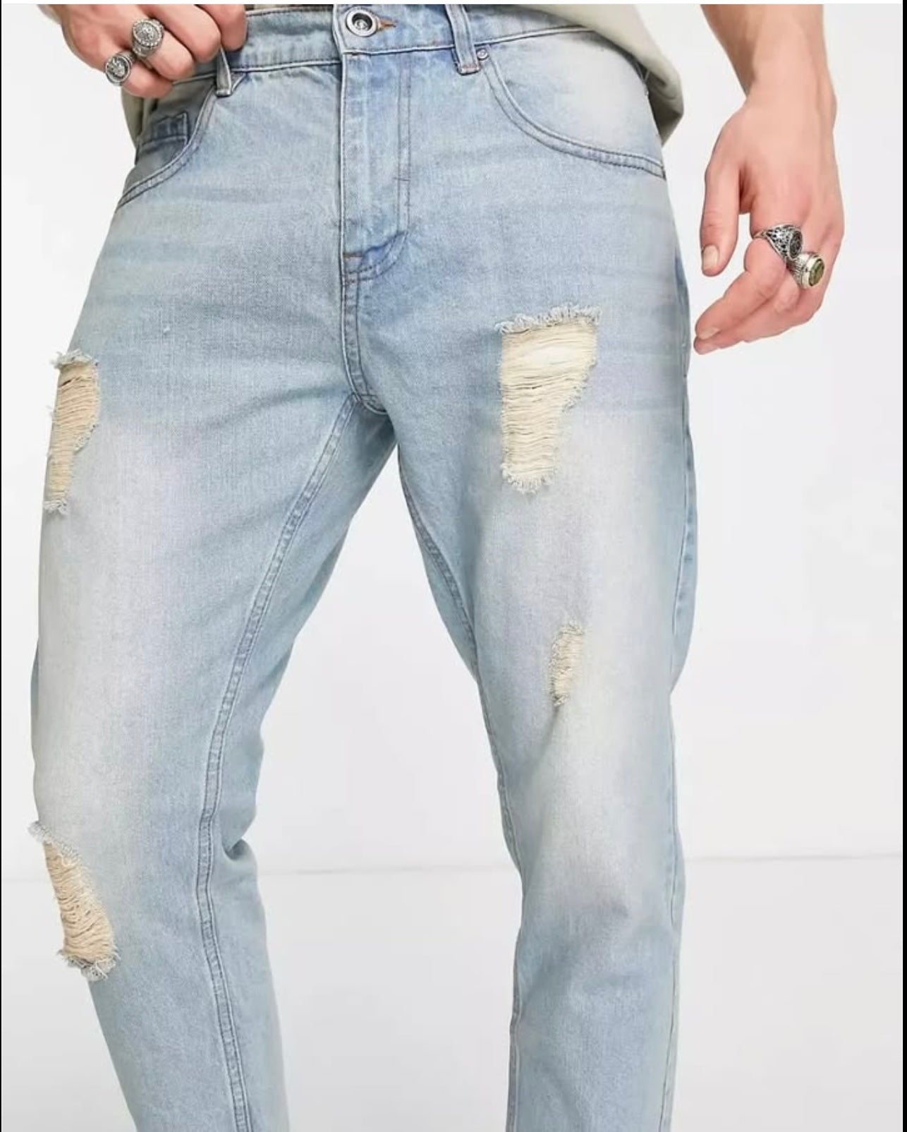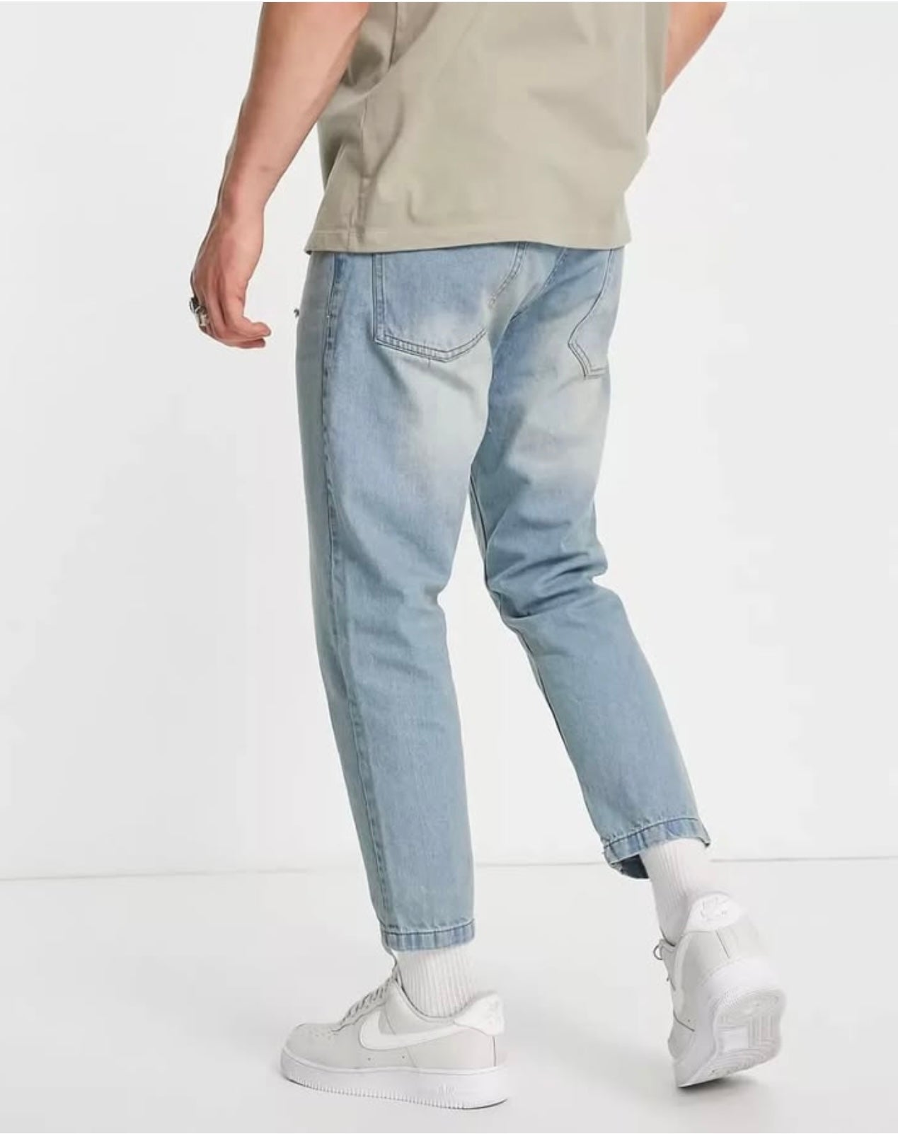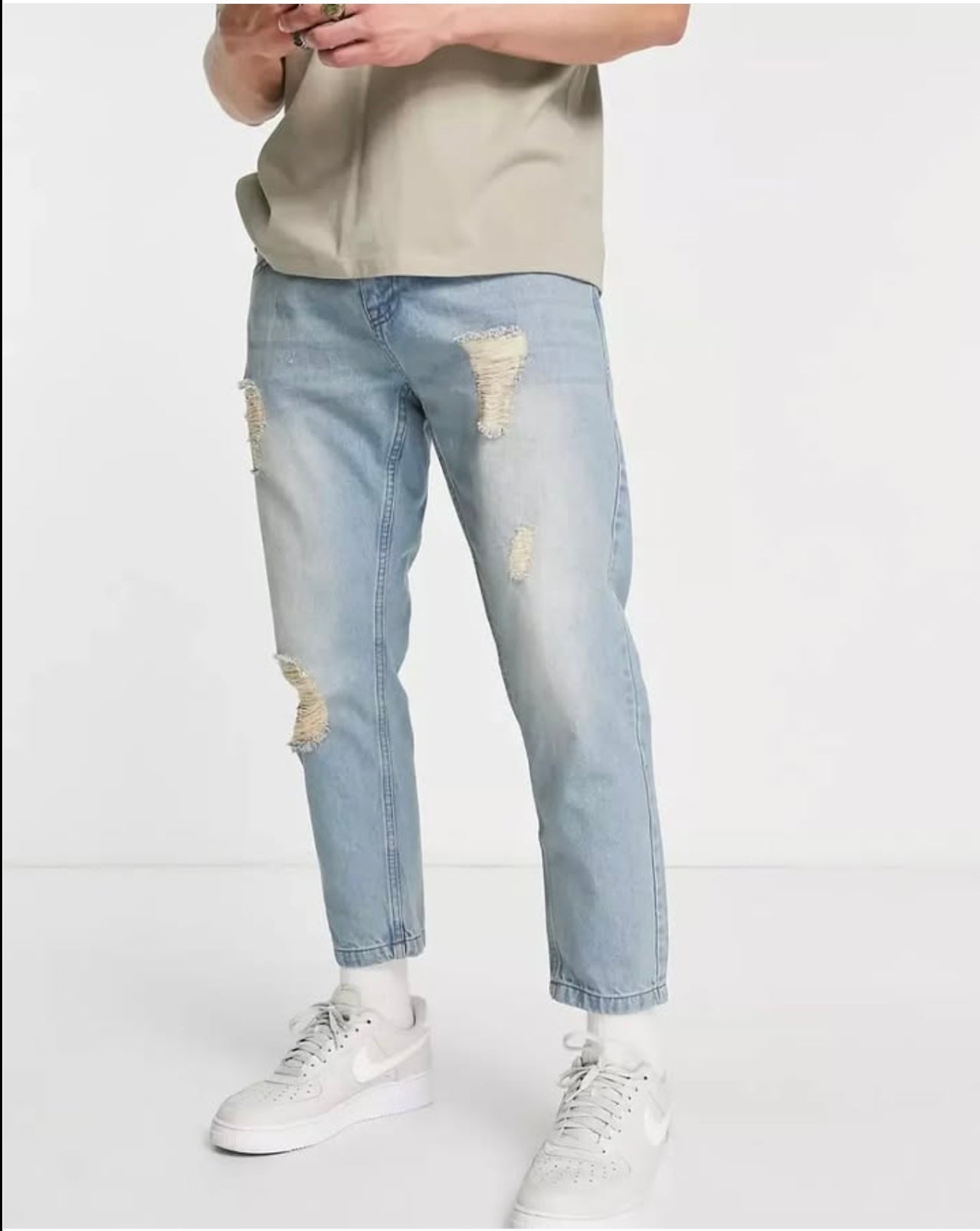 Threadbare Rigid Distressed Cropped Jeans in Blue wash