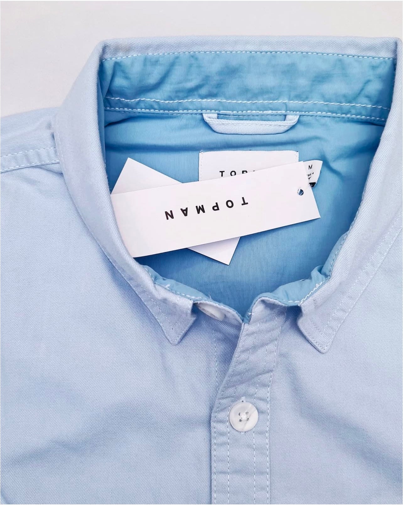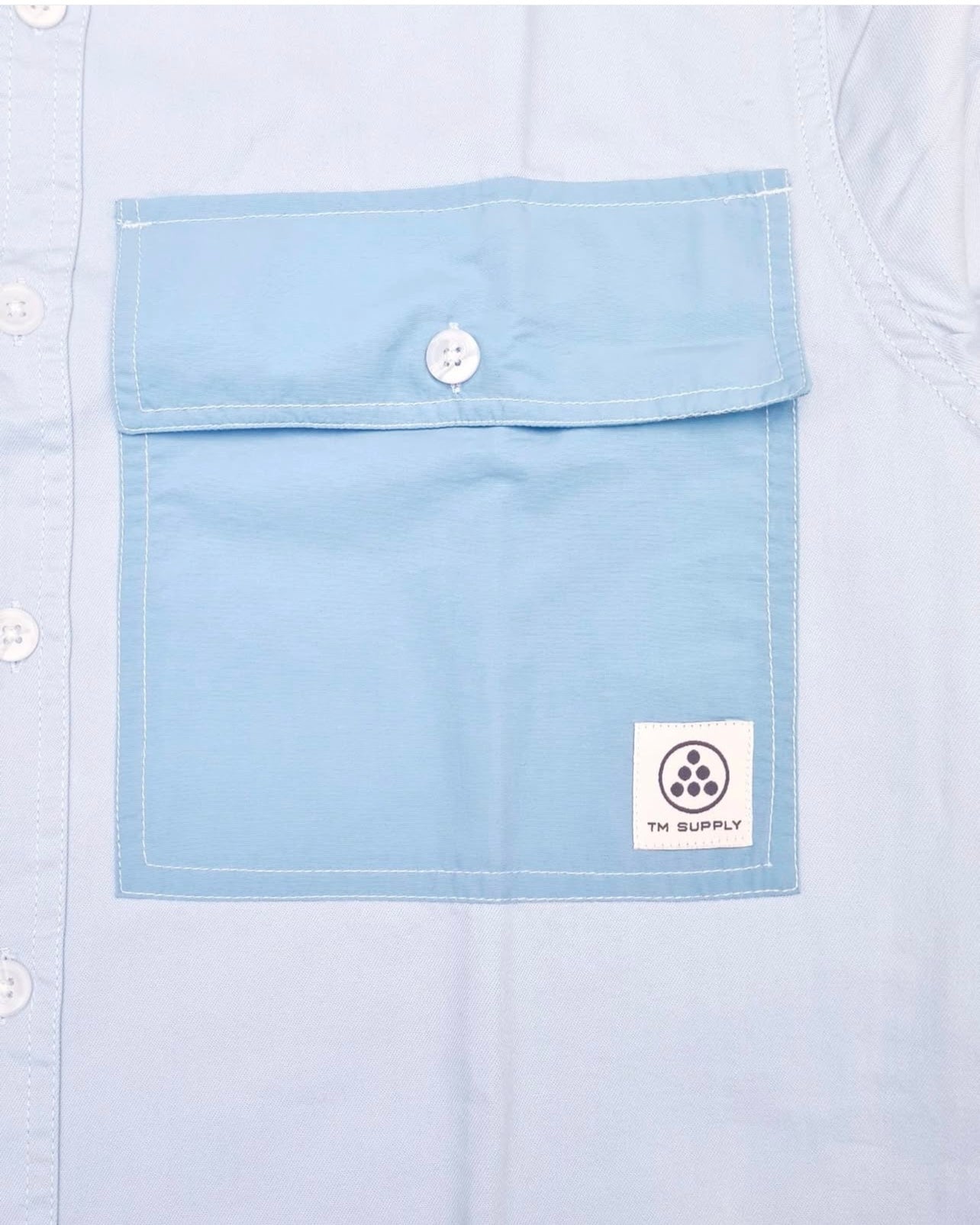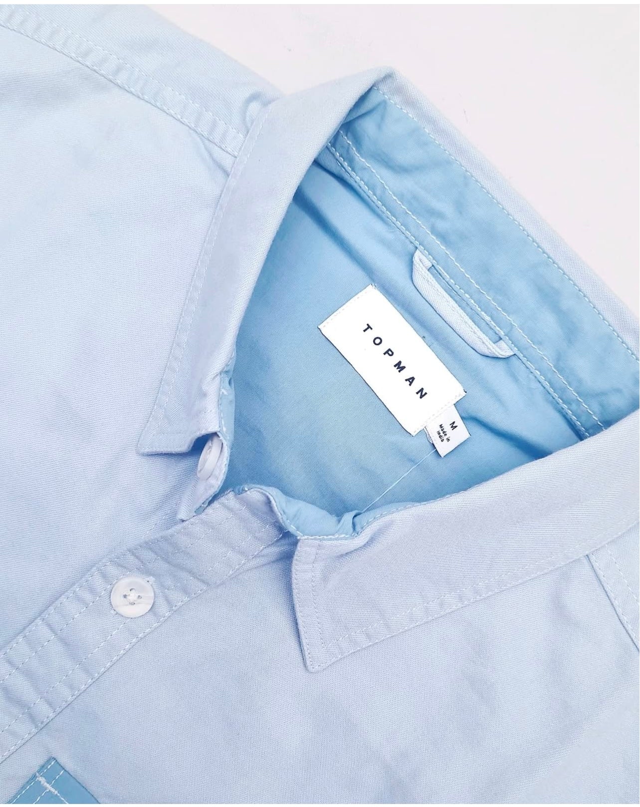 Topman Regular Fit Blue Cotton Button Cuff Shirt With Utility Pockets