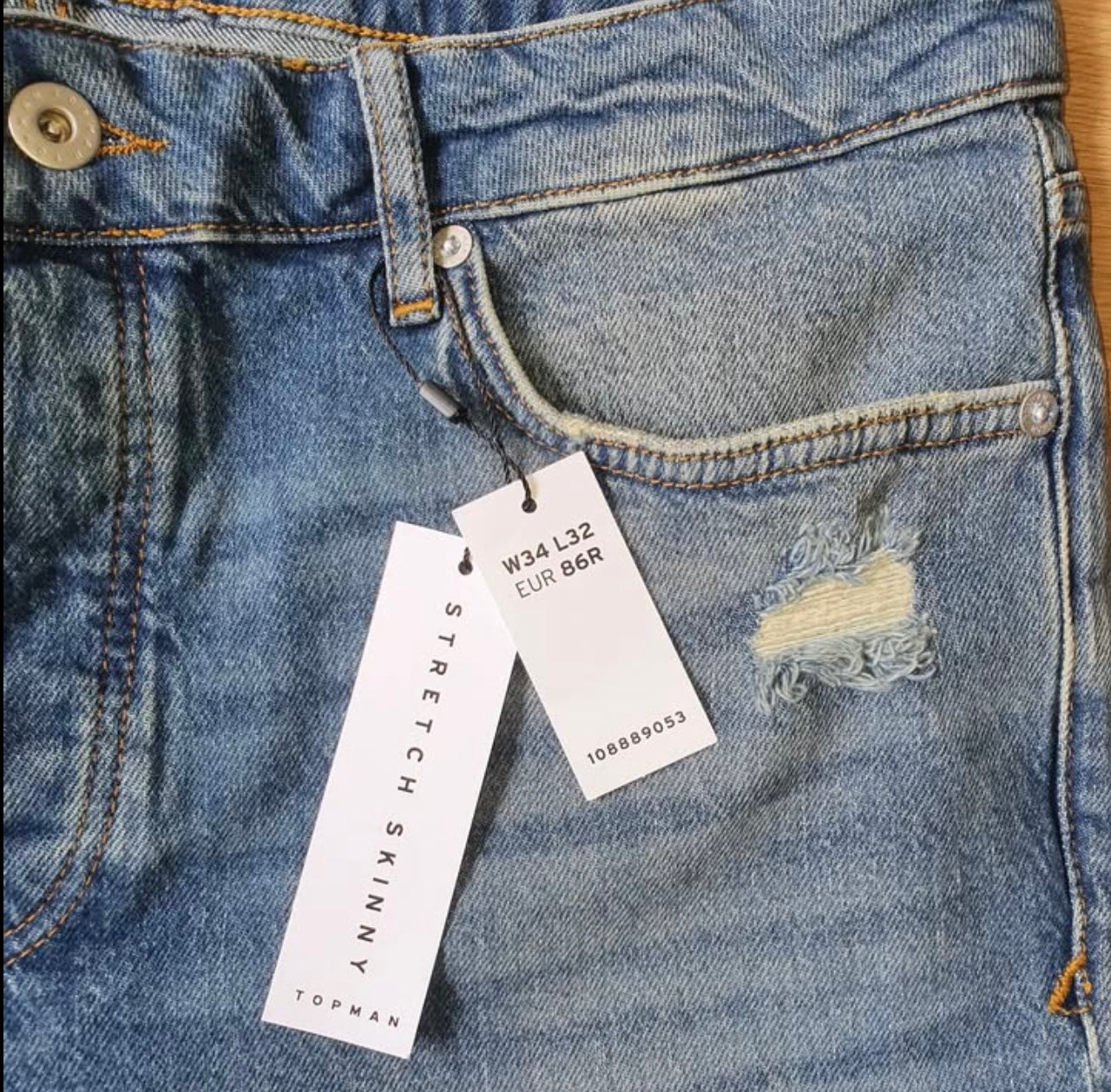 Topman Skinny Fit Ripped Stretch Denim in Blue Wash