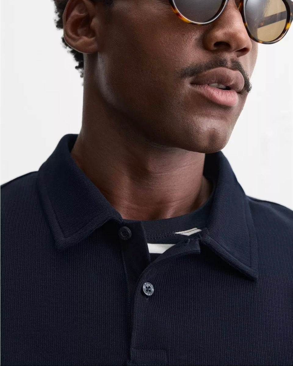 Zara Textured Polo in Navy