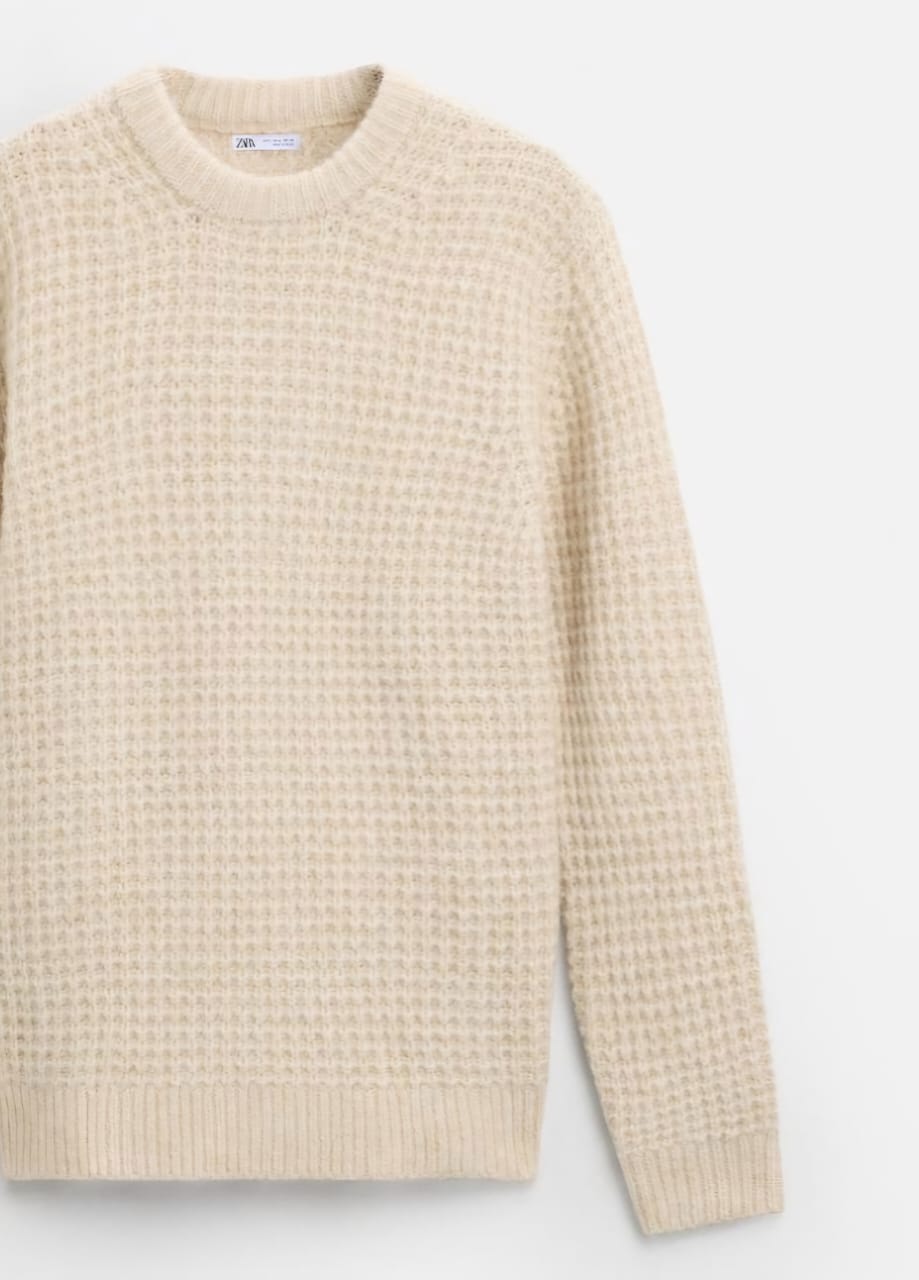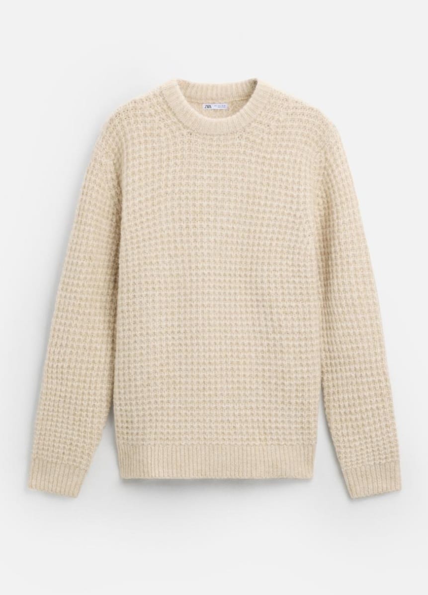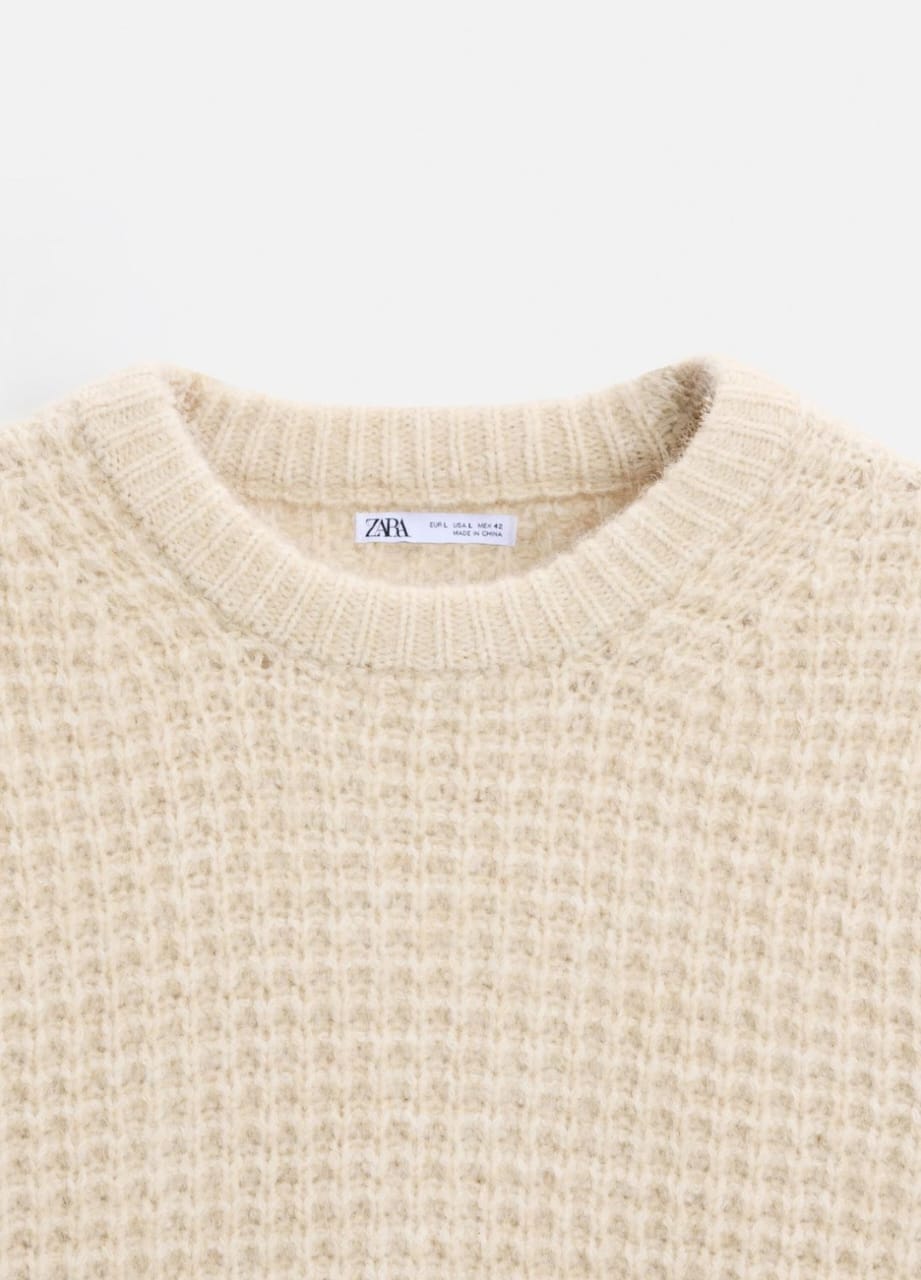 Zara Check Textured Sweater in Beige
