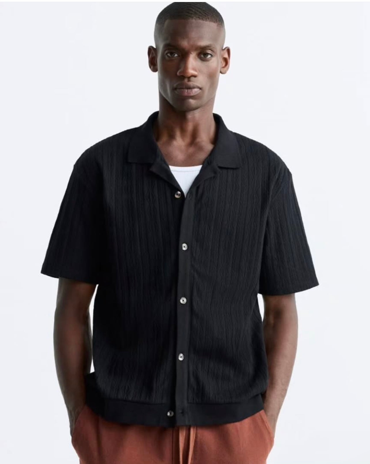 Zara Pointelle Shirt in Revere Collar