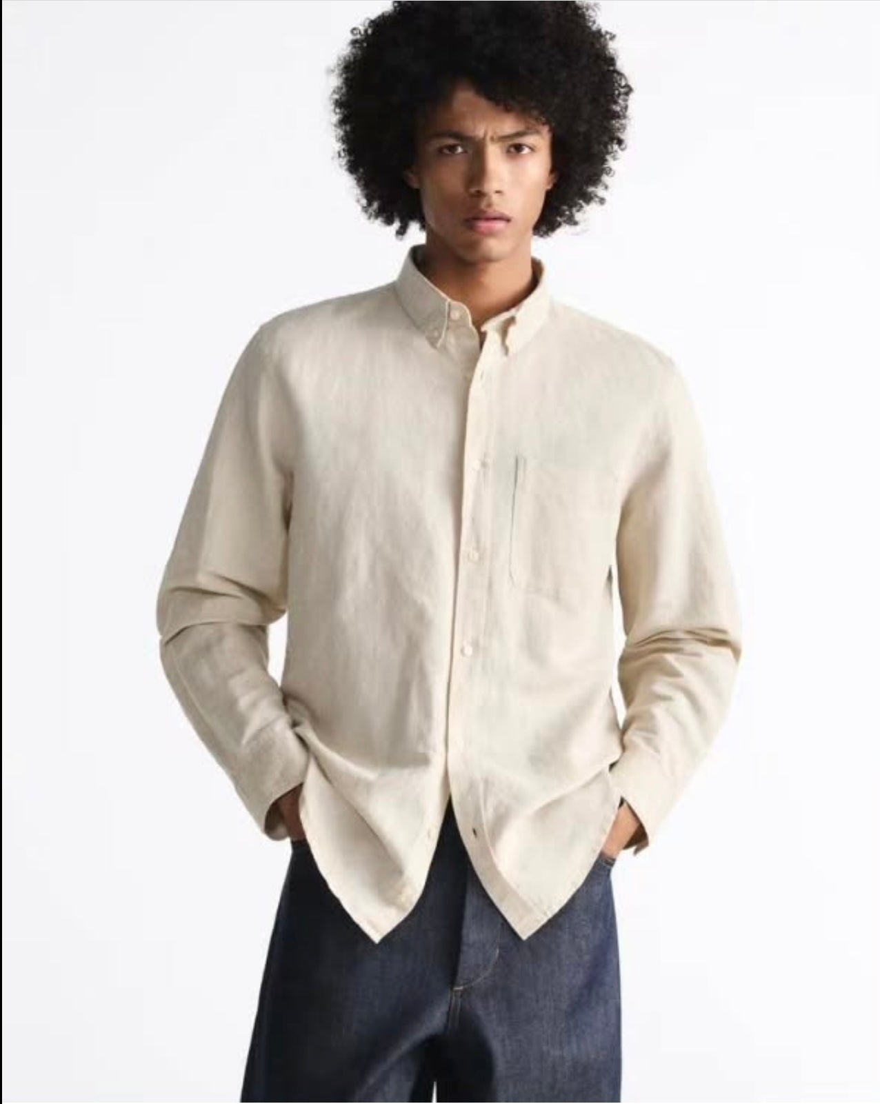 Zara Regular Fit Linen/ Cotton Shirt in Beige
