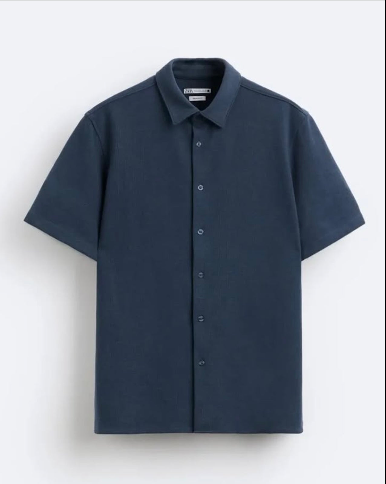 Zara Regular Fit Textured Cotton Shirt in Navy
