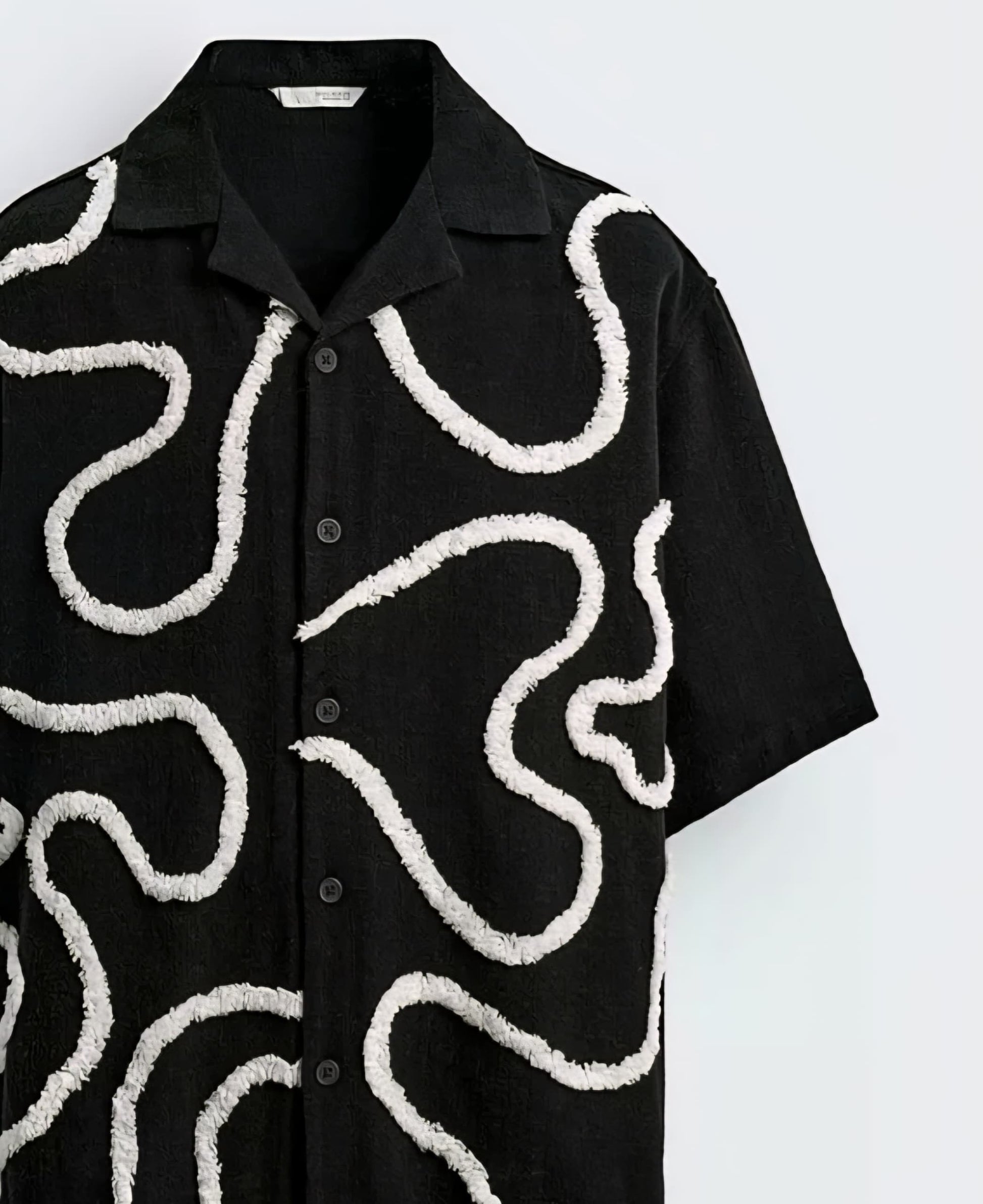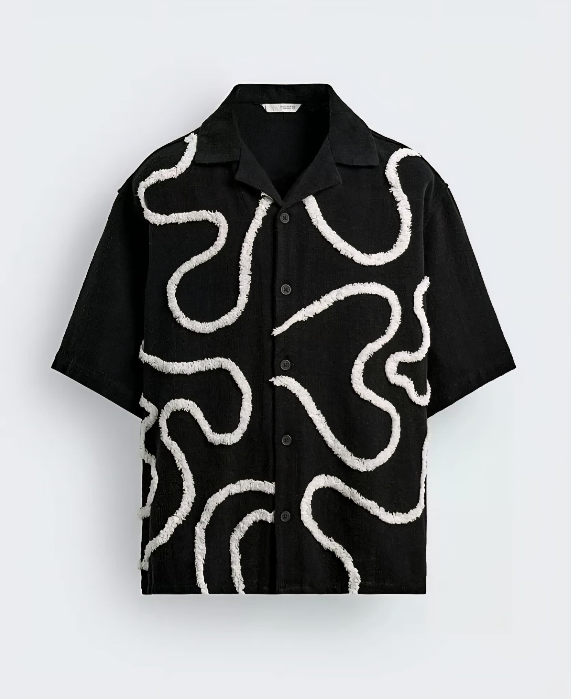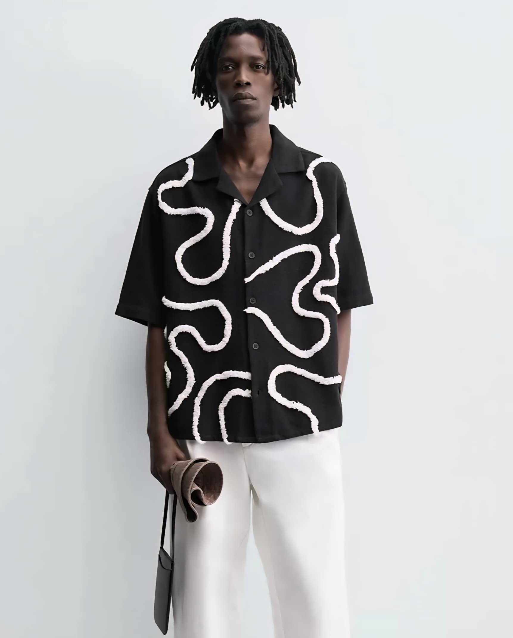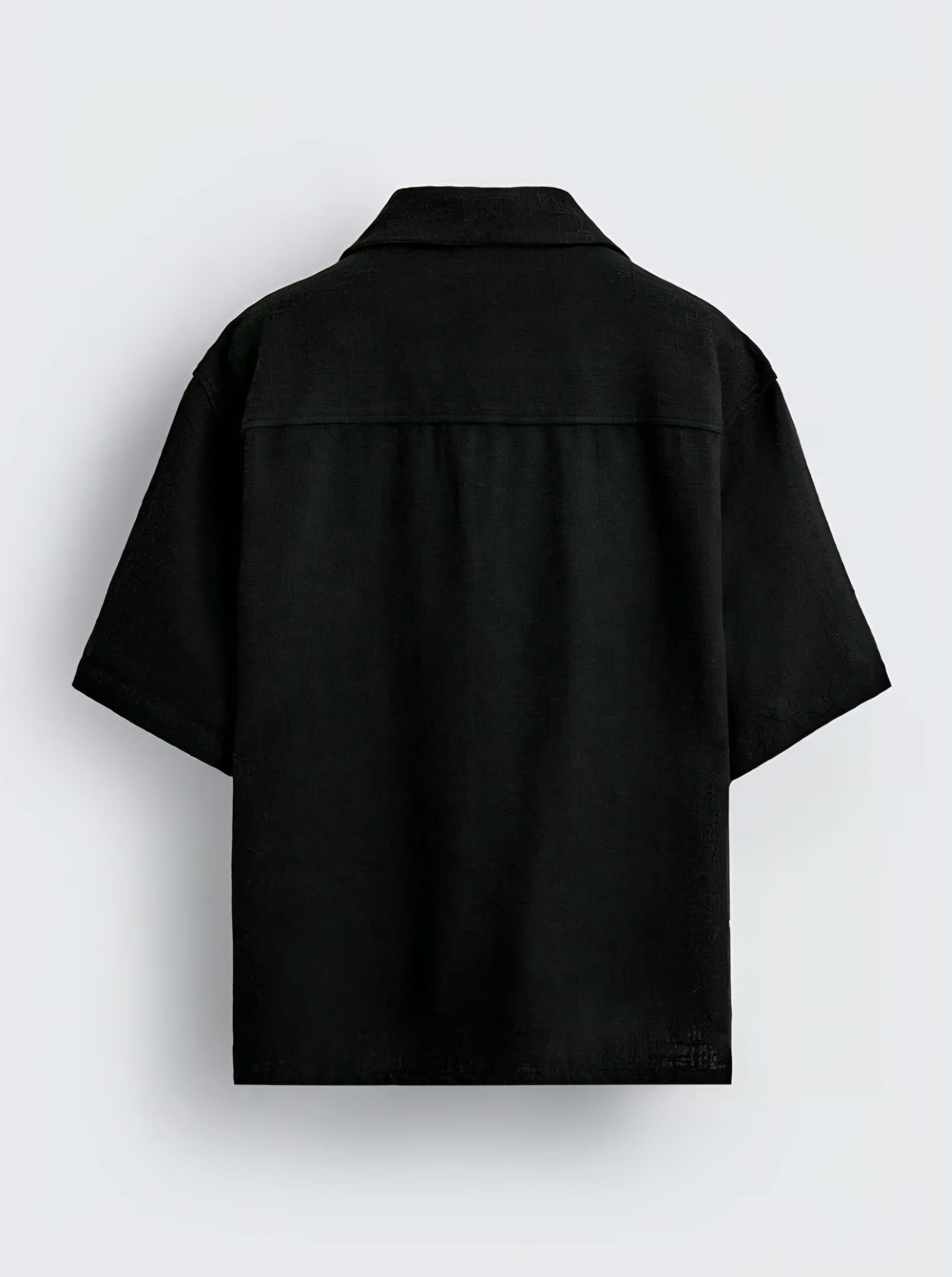 Zara Regular Fit Textured Embroidery Shirt in Black