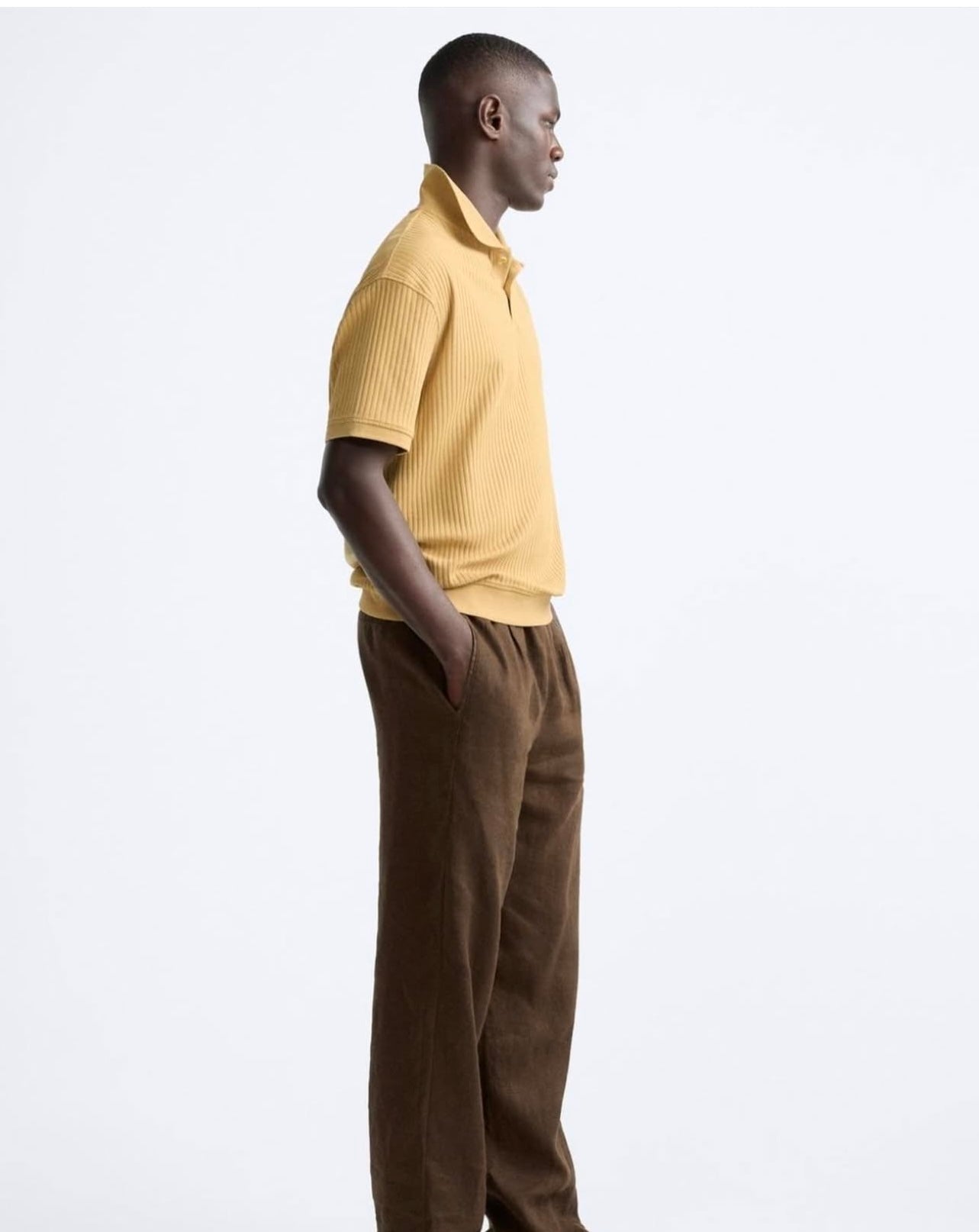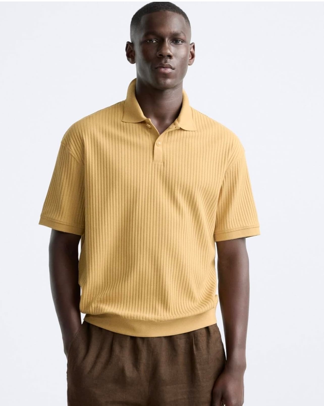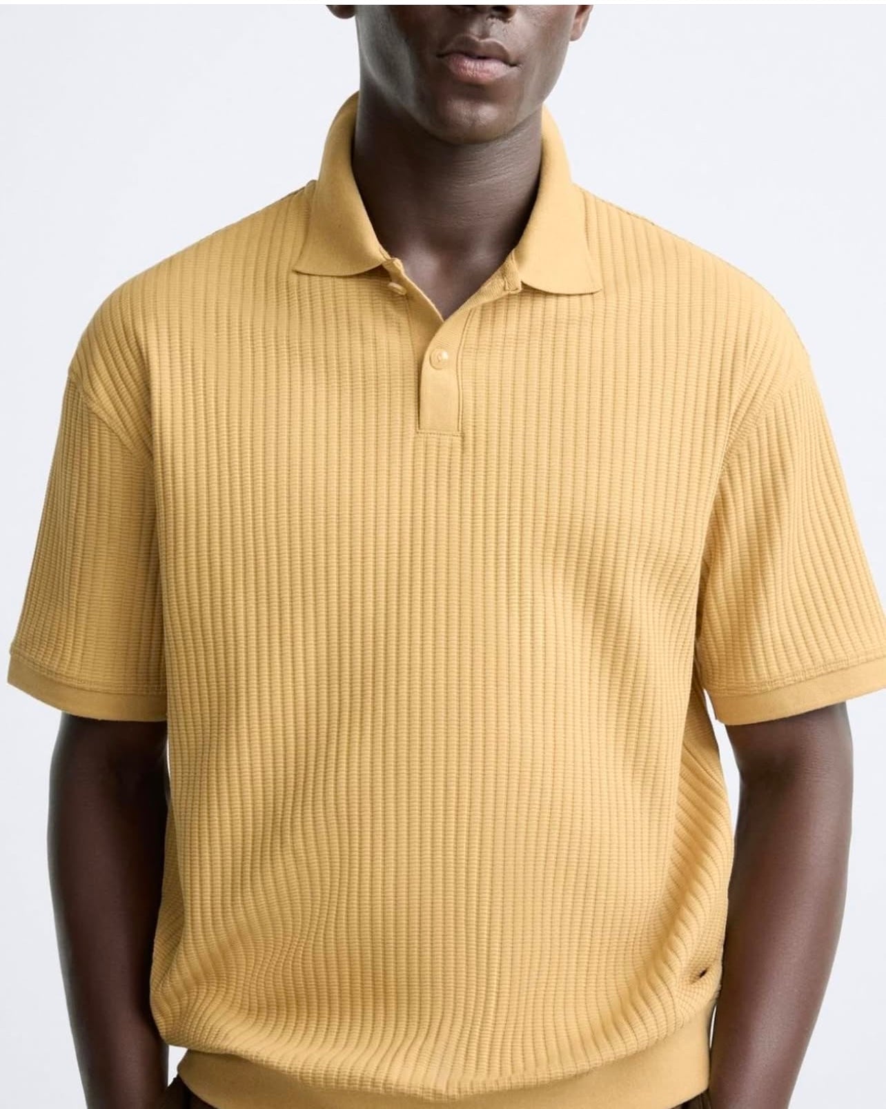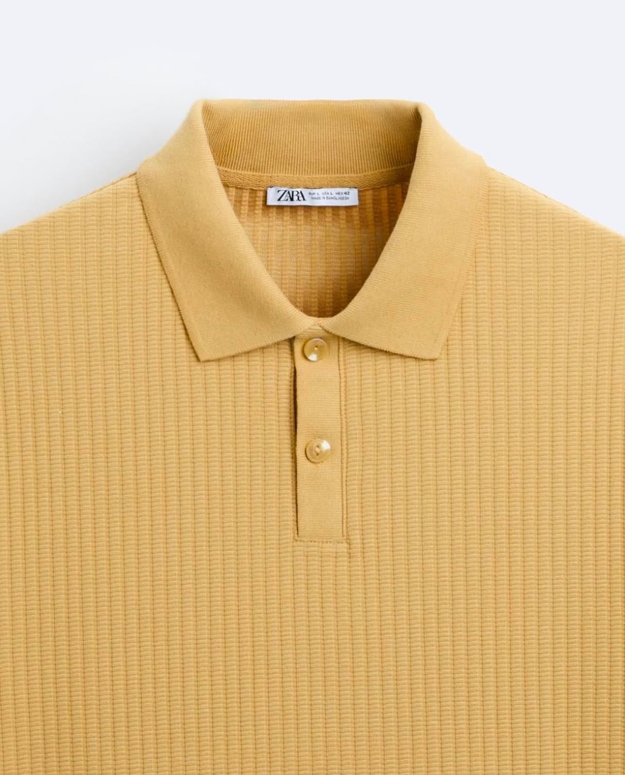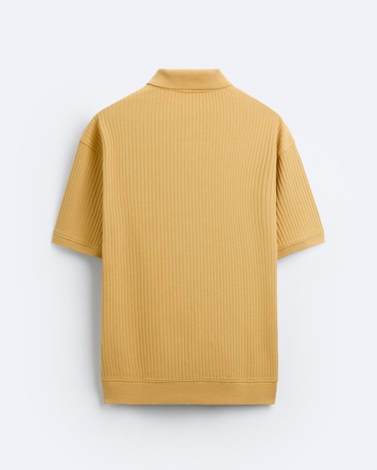 Zara Regular Fit Textured Polo Shirt in Mustard