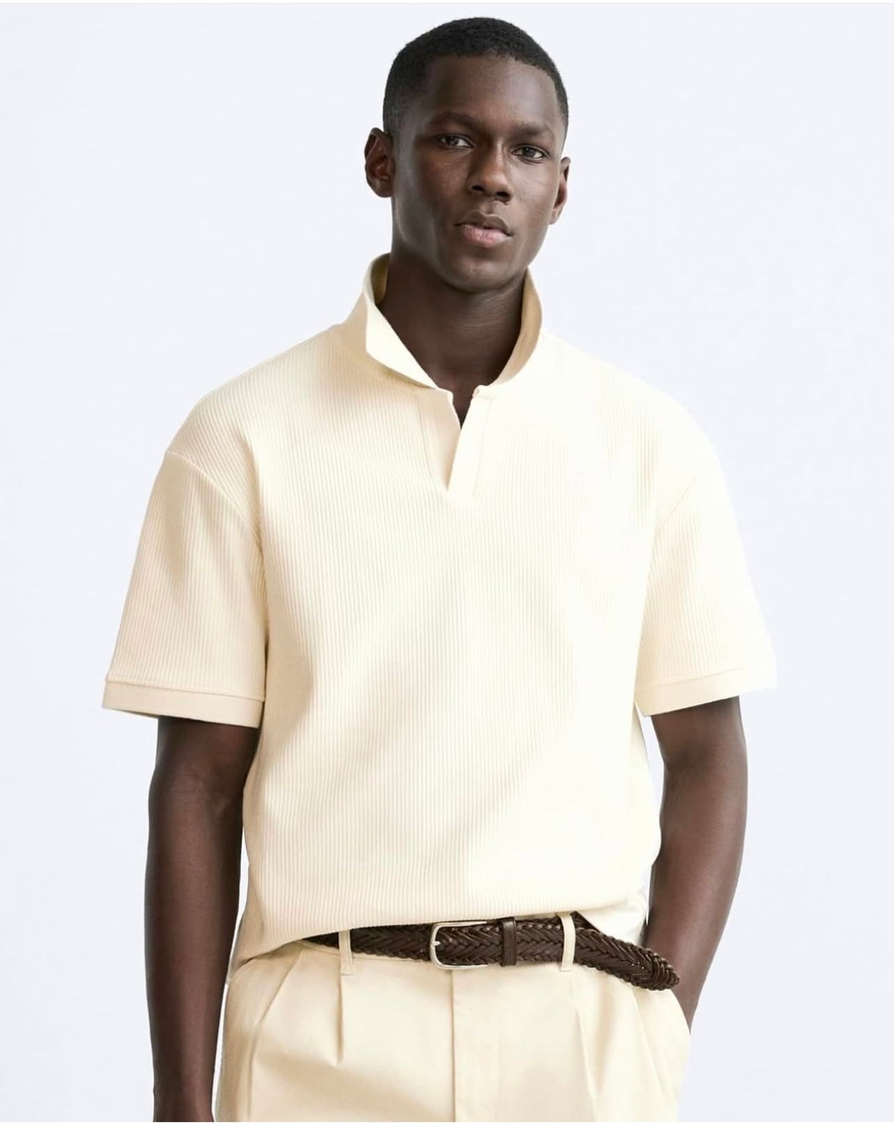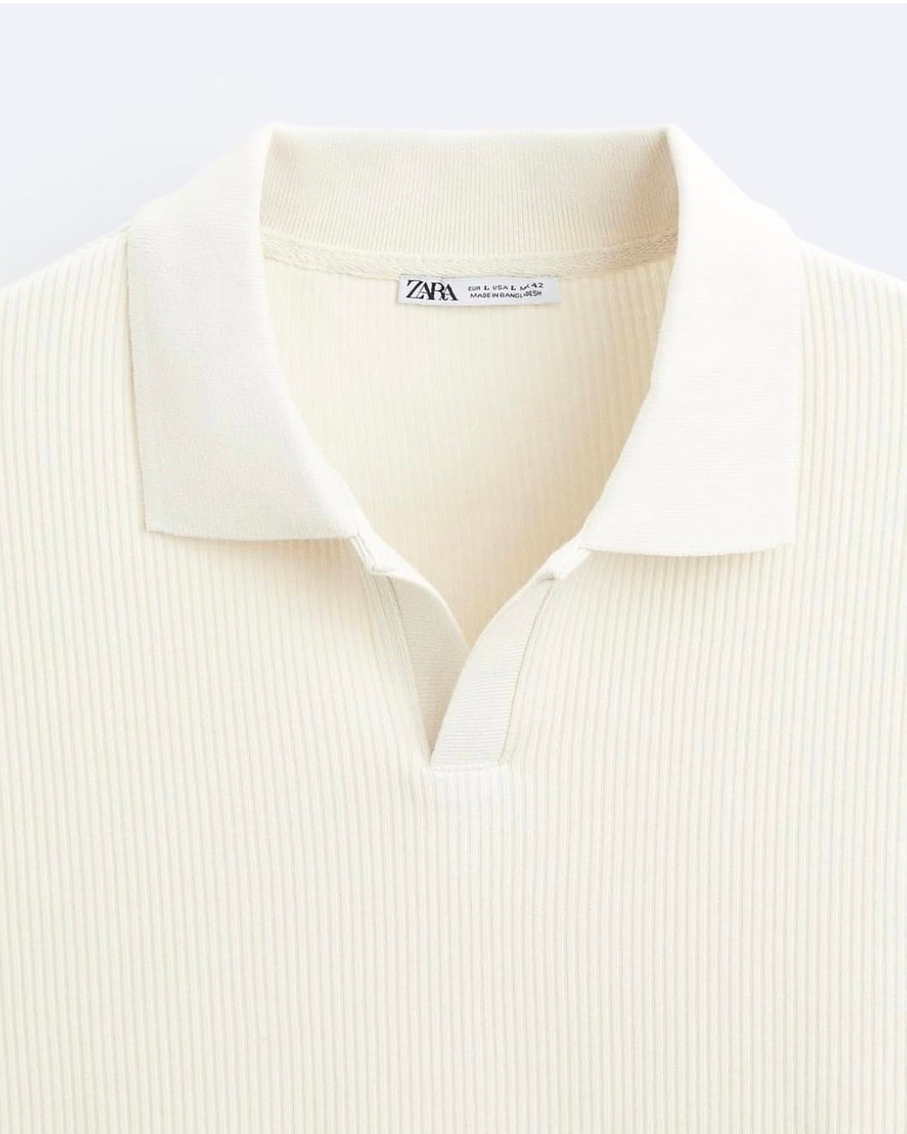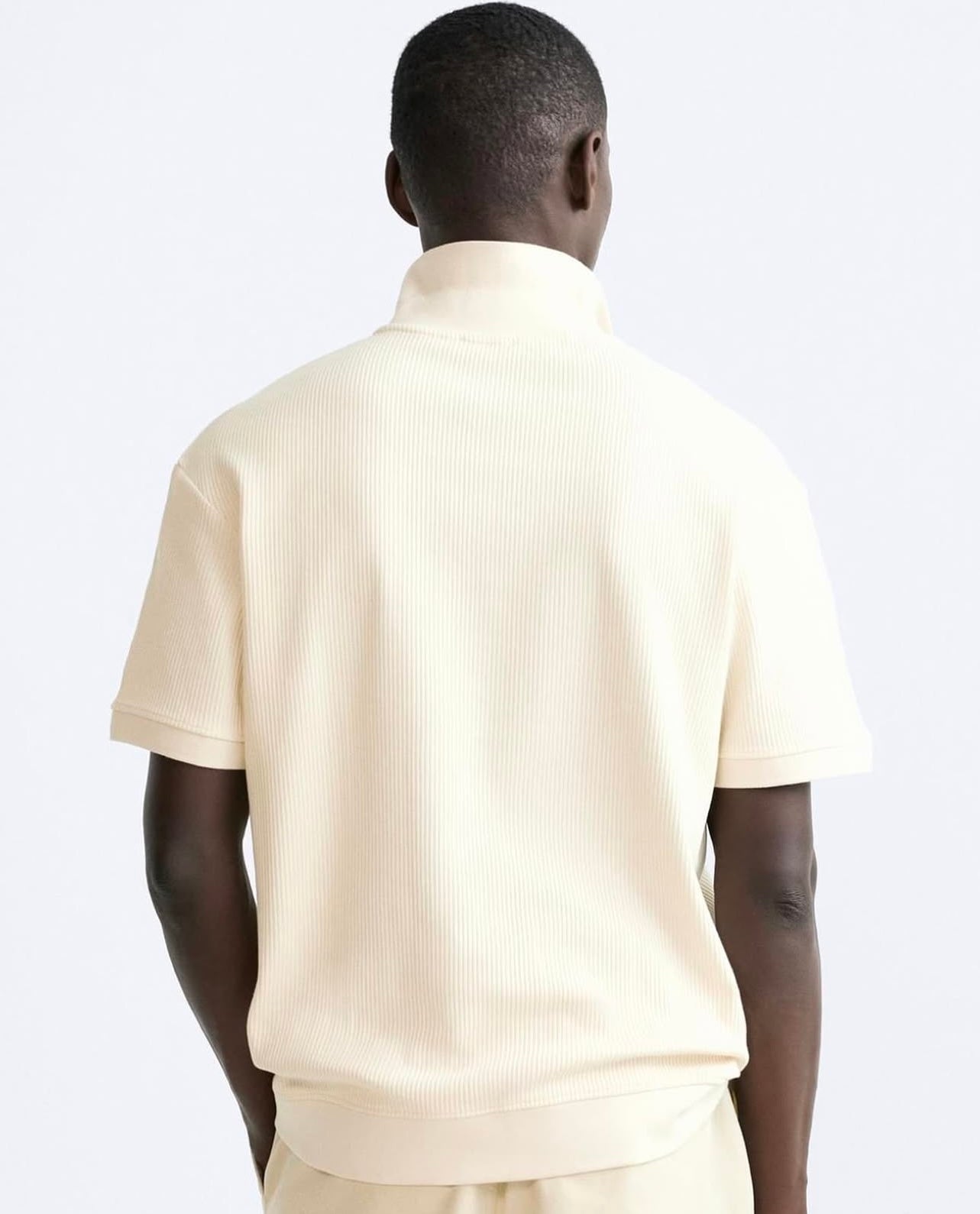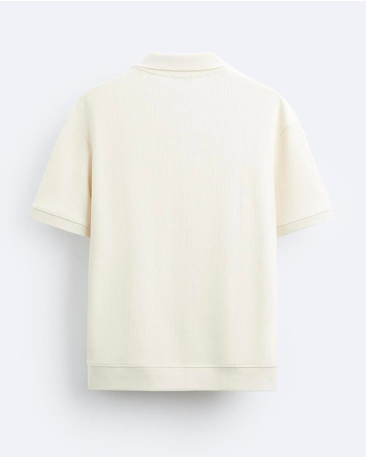 Zara Regular Fit Textured Ribbed Cotton Polo Shirt in Cream