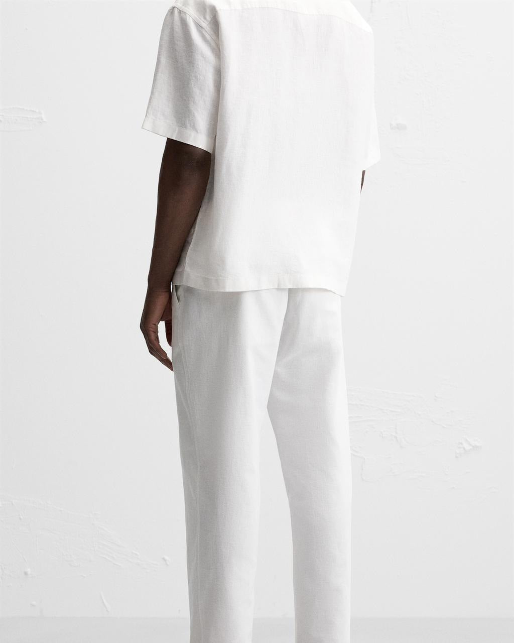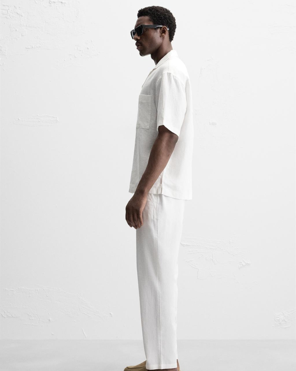 The Zara Linen Shirt offers superior breathability and comfort for warm weather. Crafted from pure flax fibers, it is a sustainable and naturally lightweight fabric that gets softer with each wash. The design focuses on clean lines and a relaxed aesthetic, perfect for effortless summer style.